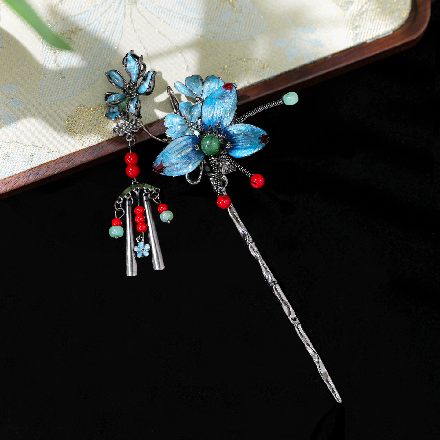 【纯手工】原创国风设计款汉服头饰蓝色发簪流苏古装妆造汉服发饰