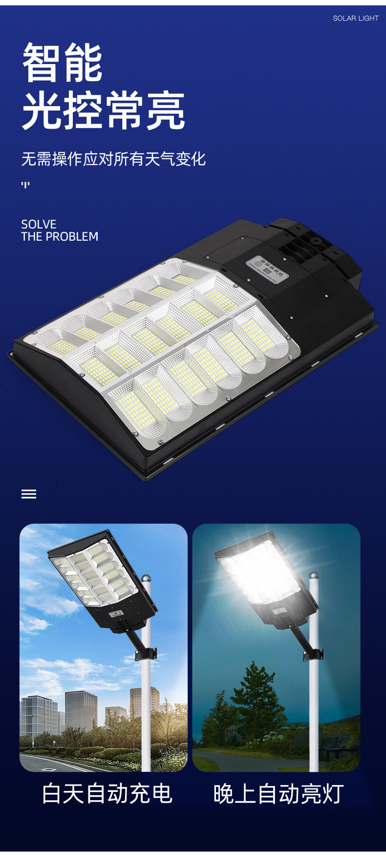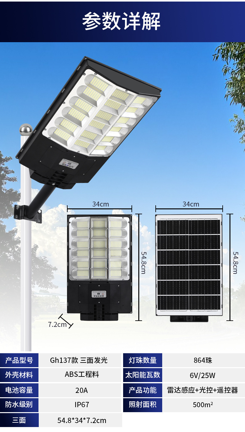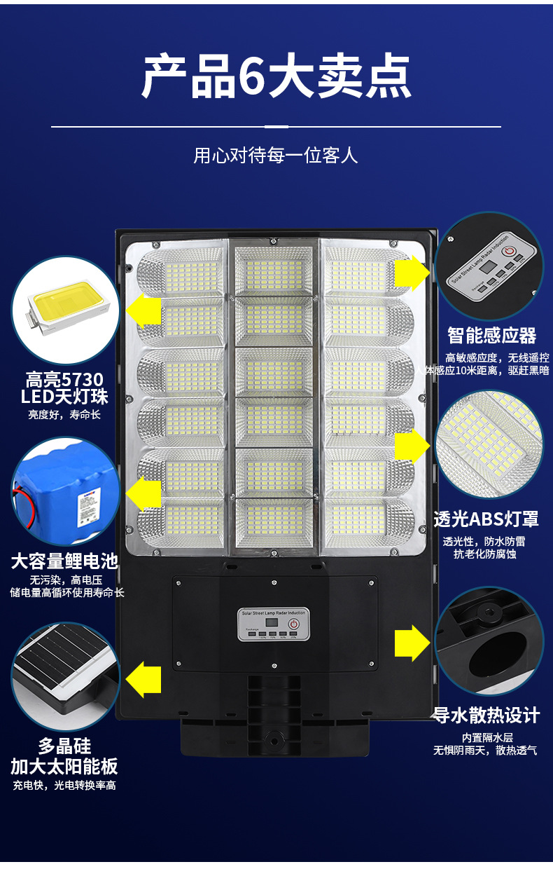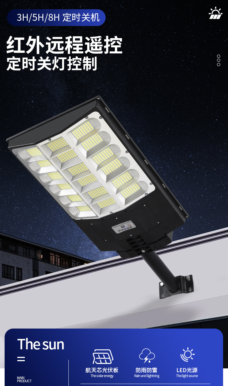国境を越えた新型太陽灯屋外防水庭灯一体化大電力600w街灯源工場