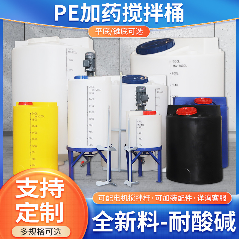 搅拌罐带电机加厚耐酸碱耐腐蚀pe加药箱锥底易清洗洗衣液日化桶