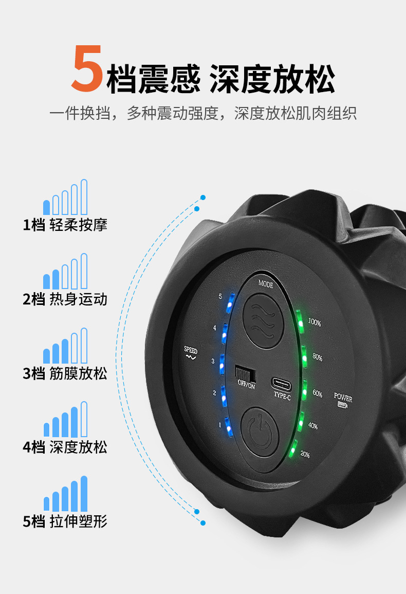 電動フォームローラー 5段階調整 クロスボーダー ヨガ フィットネス 振動 リラックス マッサージローラー 電動波形筋膜ローラー ヨガローラー