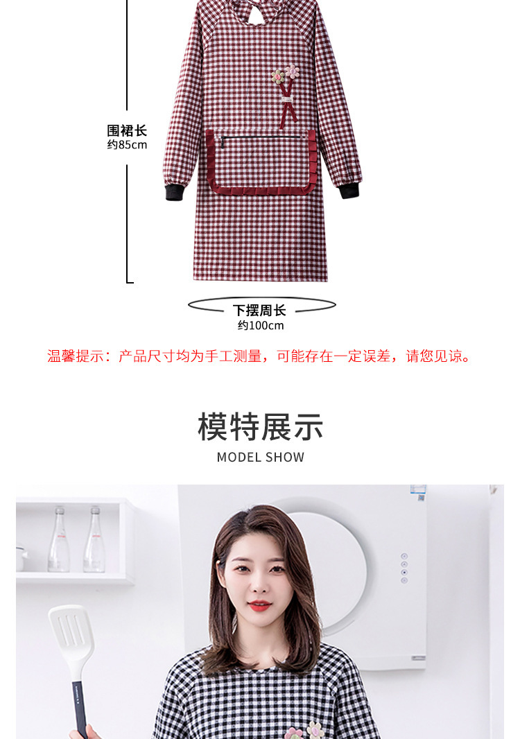 洋気綿布長袖エプロン家庭用キッチン防汚通気料理カバー成人女性韓国版汚れ防止作業服