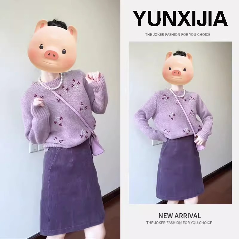 秋冬穿搭一整套2025新款慵懒风洋气针织毛衣显瘦百搭半身裙两件套