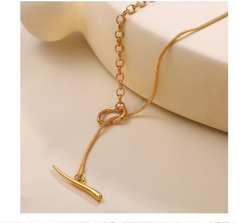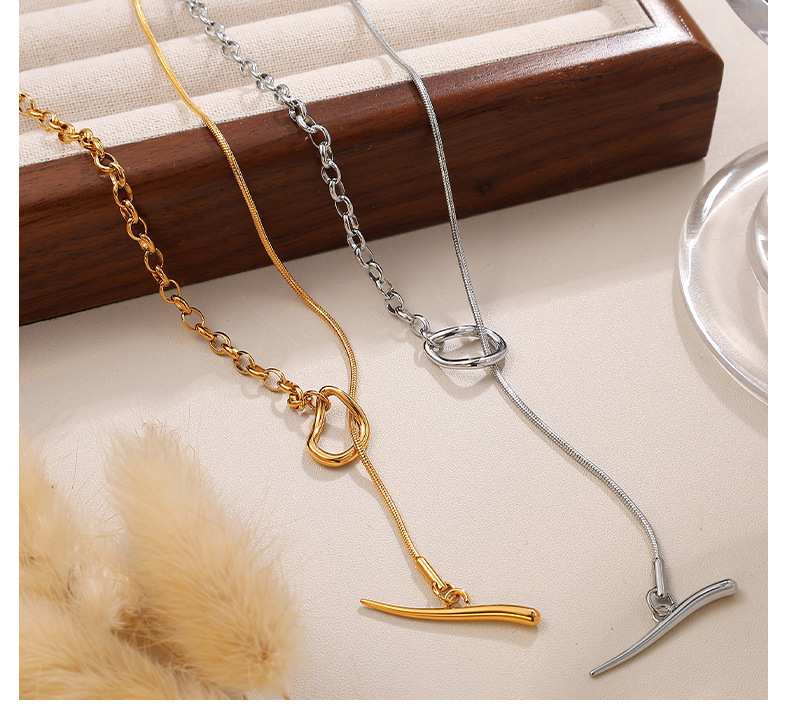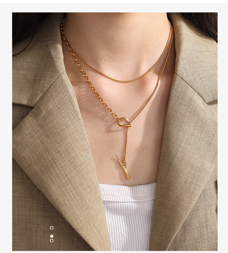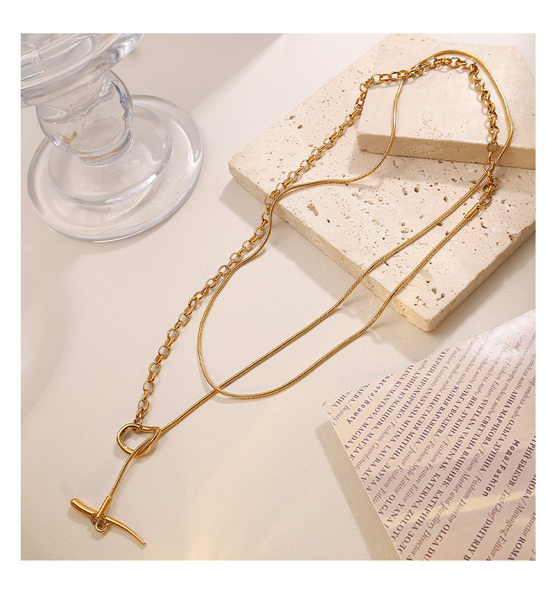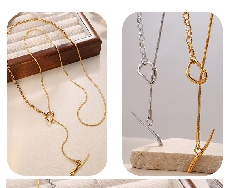 韓系ins風個性小衆幾何学線結びデザイン蛇骨鎖百合メッキ18kセーター鎖ファッション感