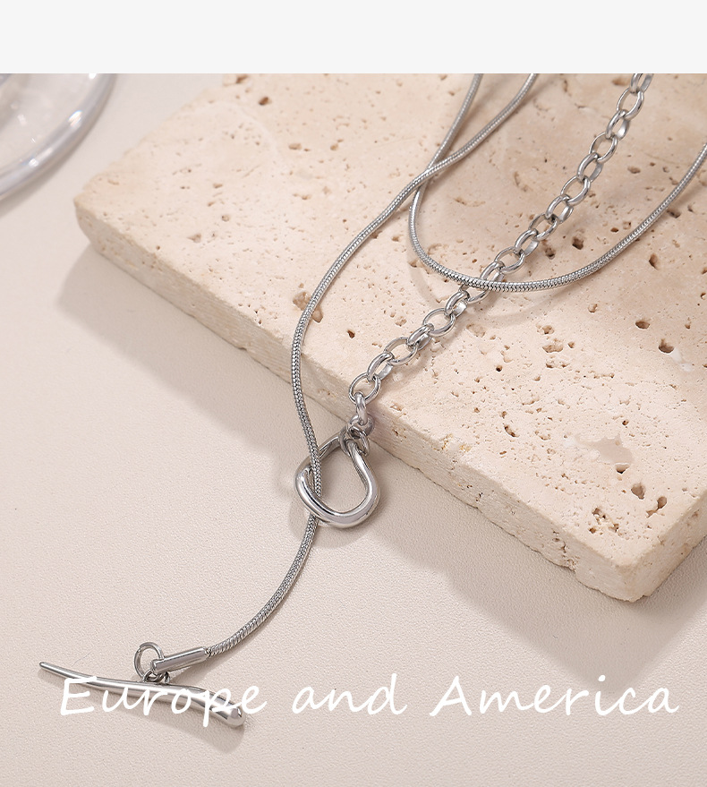 日系小众设计极简风项链不锈钢猪鼻子长款简约时尚ot扣毛衣链项饰