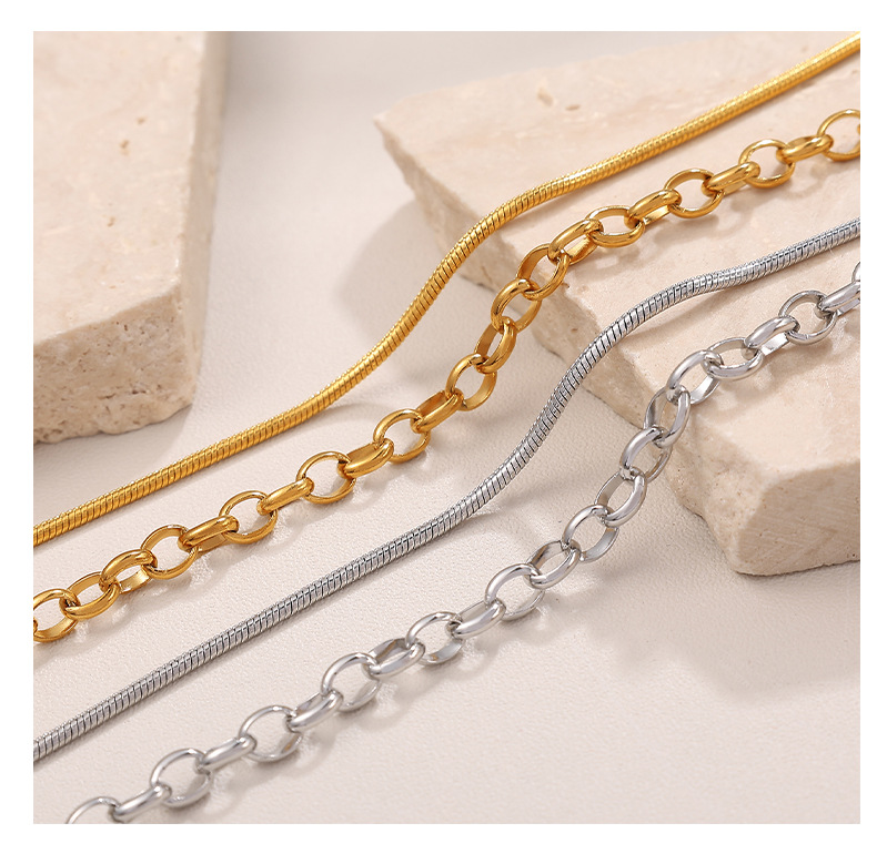 韓国の韓国式チタン鋼の金メッキのネックレスの鎖の鎖は簡単です。