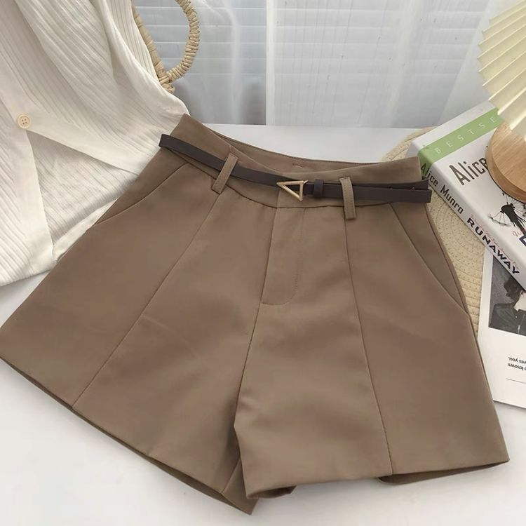外贸2025夏季新款时尚百搭高腰显瘦西装短裤休闲裤阔腿裤短裤配皮