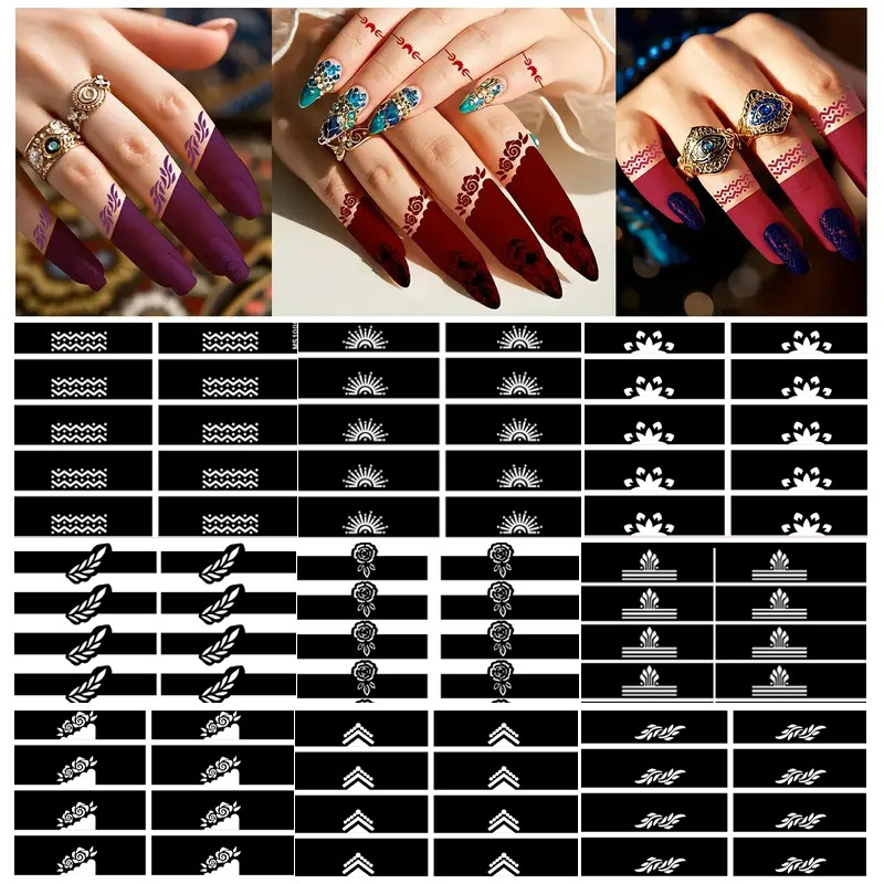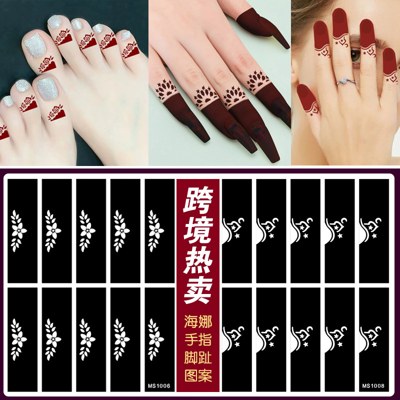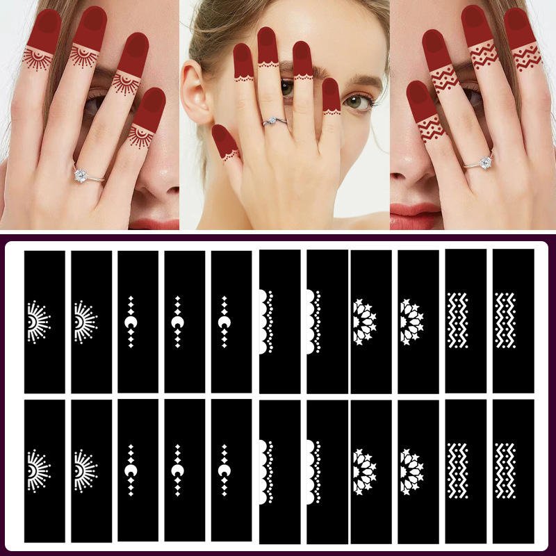 国境を越えた卸売指ステッカー diy ジュースタトゥーテンプレートパターン小さなパターン刺繍中空手描きヘナタトゥーステッカー