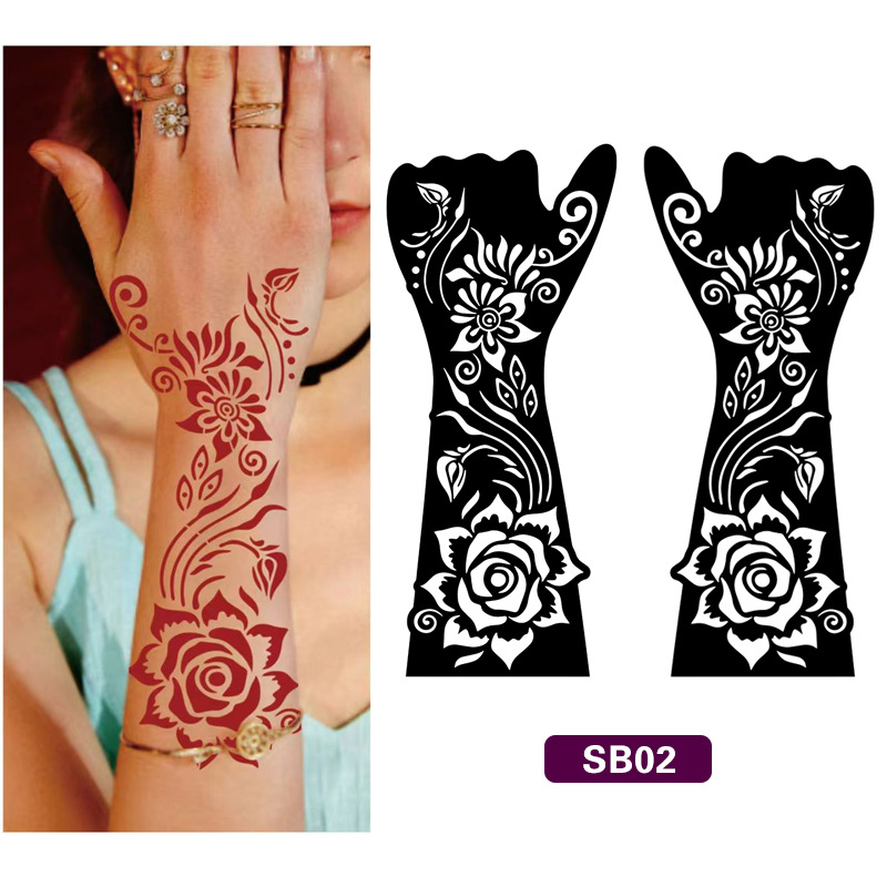 外国貿易 ヘナ インドジュース ローズフラワー スプレー塗装 カットアウトタトゥーテンプレートパターン DIY シミュレーションテンプレートパターン