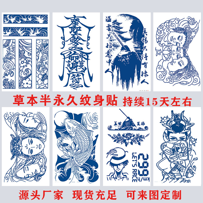 半ジュース草本タトゥーは国境を越えた防水持続的な男女刺青文字タトゥーシール真の文体を貼っている
