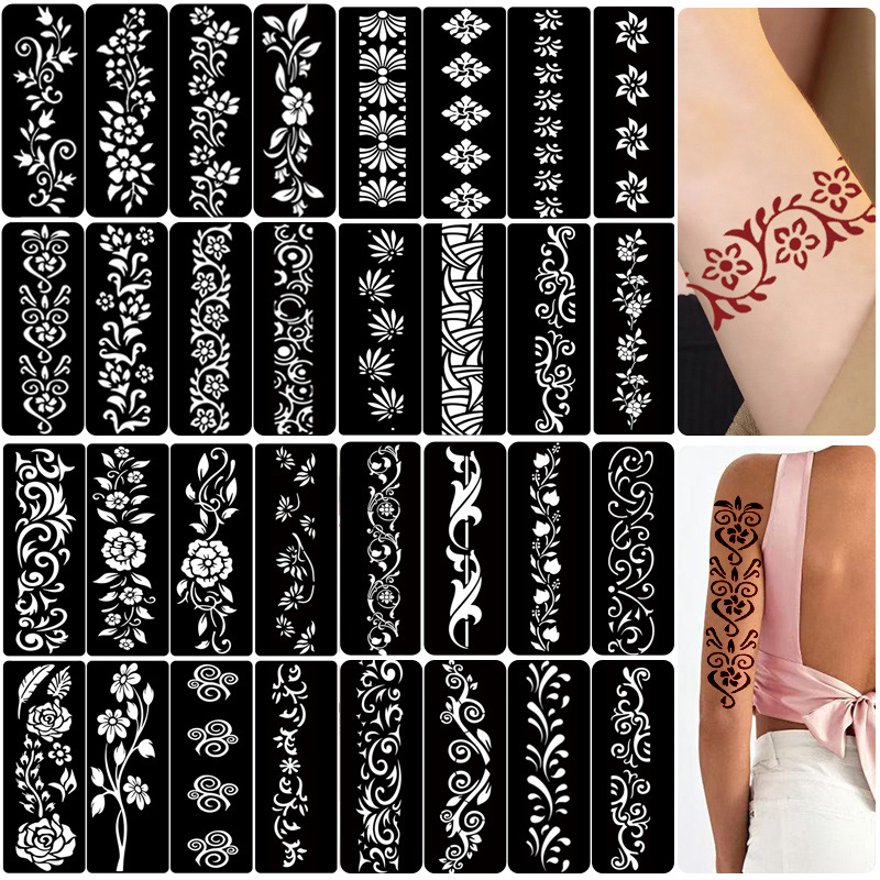 纹身贴纹身模版海娜手绘纹身镂空模版手环模版半永久跨境纹身贴