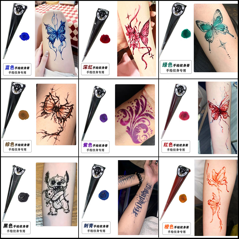 カスタマイズされた手描きタトゥークリーム Douyin 同じスタイルのヘナタトゥークリーム塗装タトゥーテンプレートクロスボーダータトゥークリーム卸売