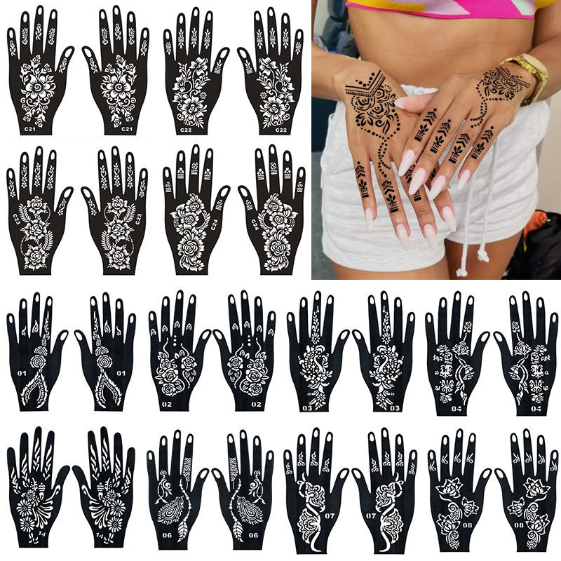 クロスボーダーパームタトゥーステッカーテンプレート インド風スプレー塗装中空テンプレート オリジナルハンドシェイプカラーペイントジュースタトゥーハンドマスク一時的