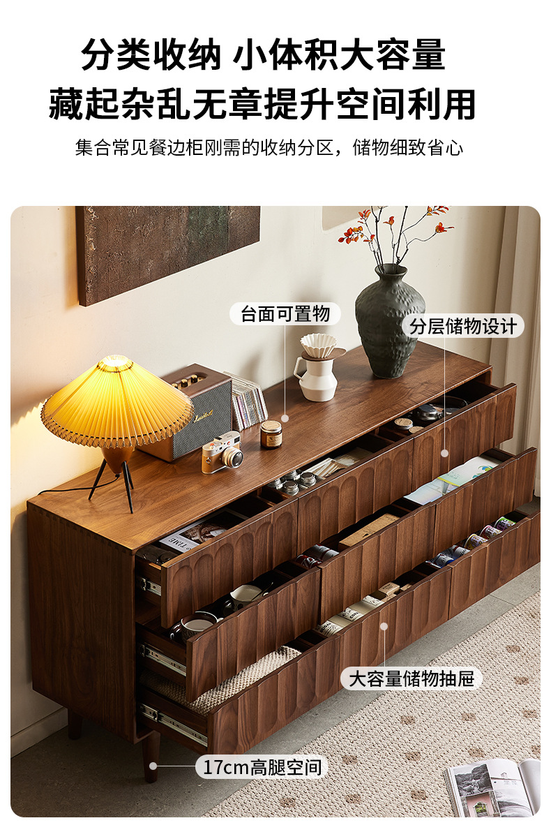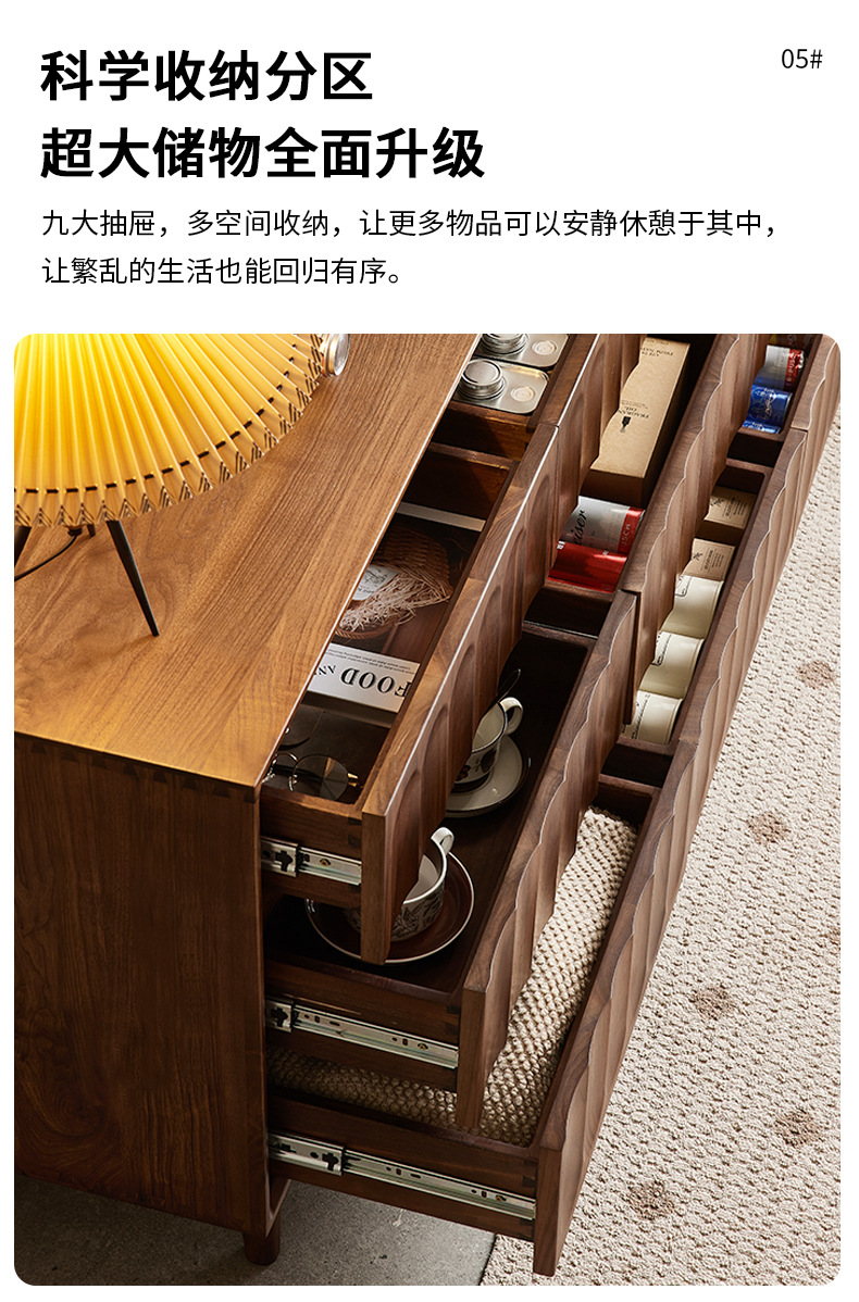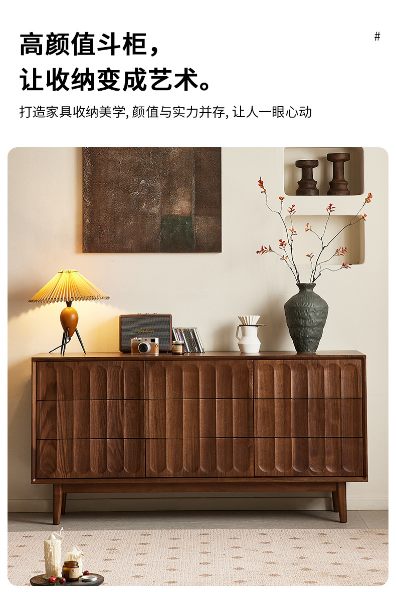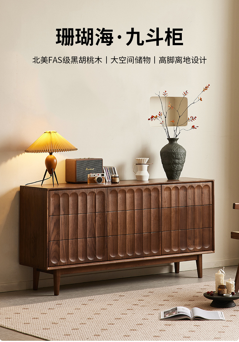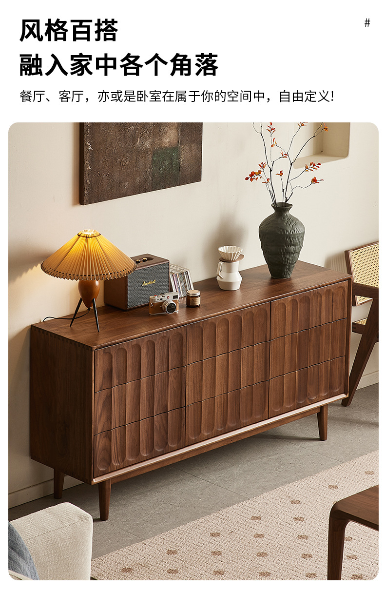 Yamoo北米黒胡桃木九斗戸棚北欧シンプル全実木斗戸棚家庭用客間壁ロッカー
