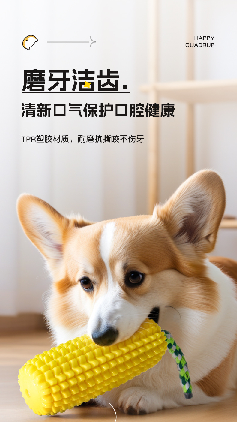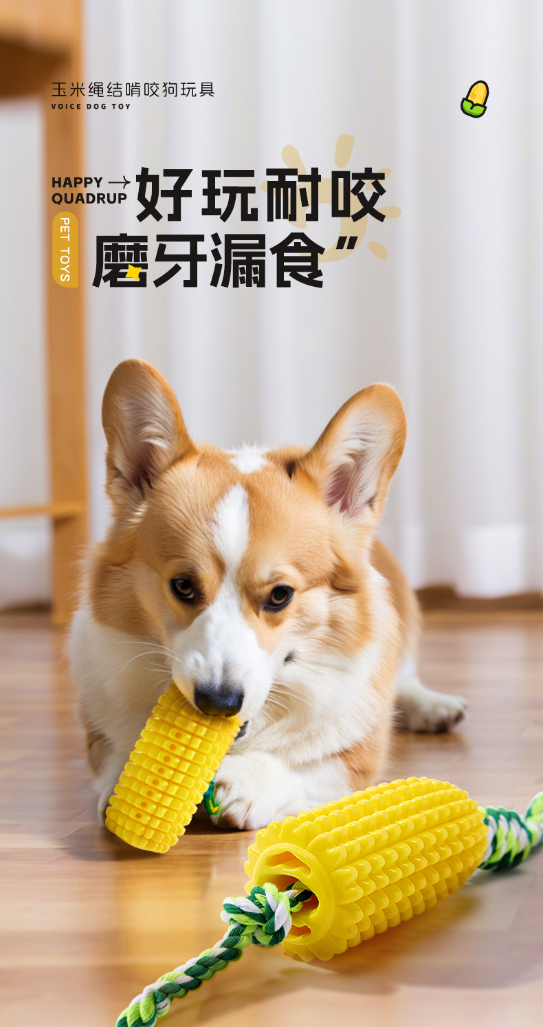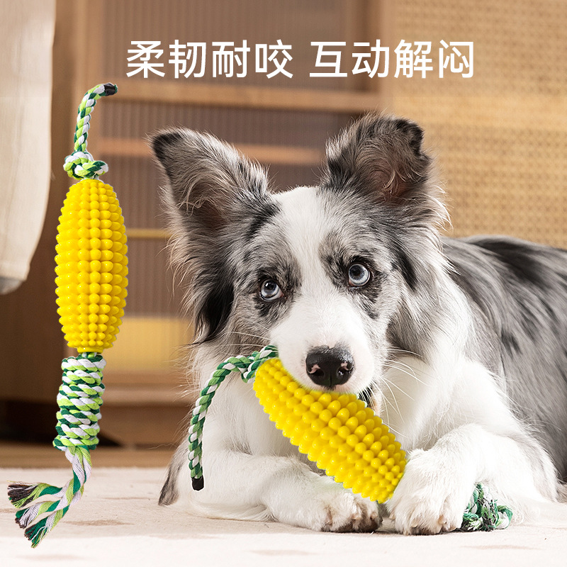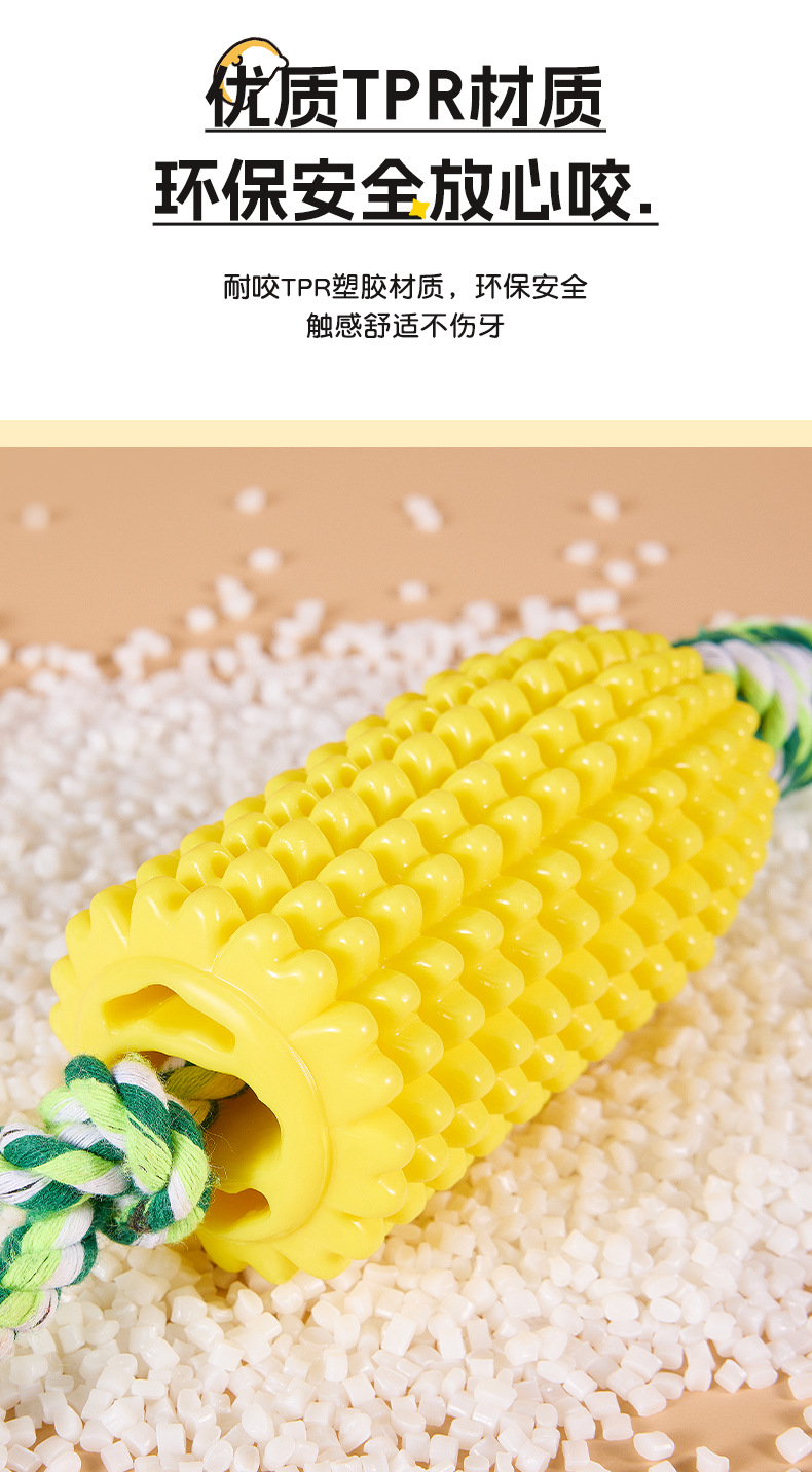犬のおもちゃtprは噛み応えがあります。トウモロコシは犬のおもちゃをかじっています。