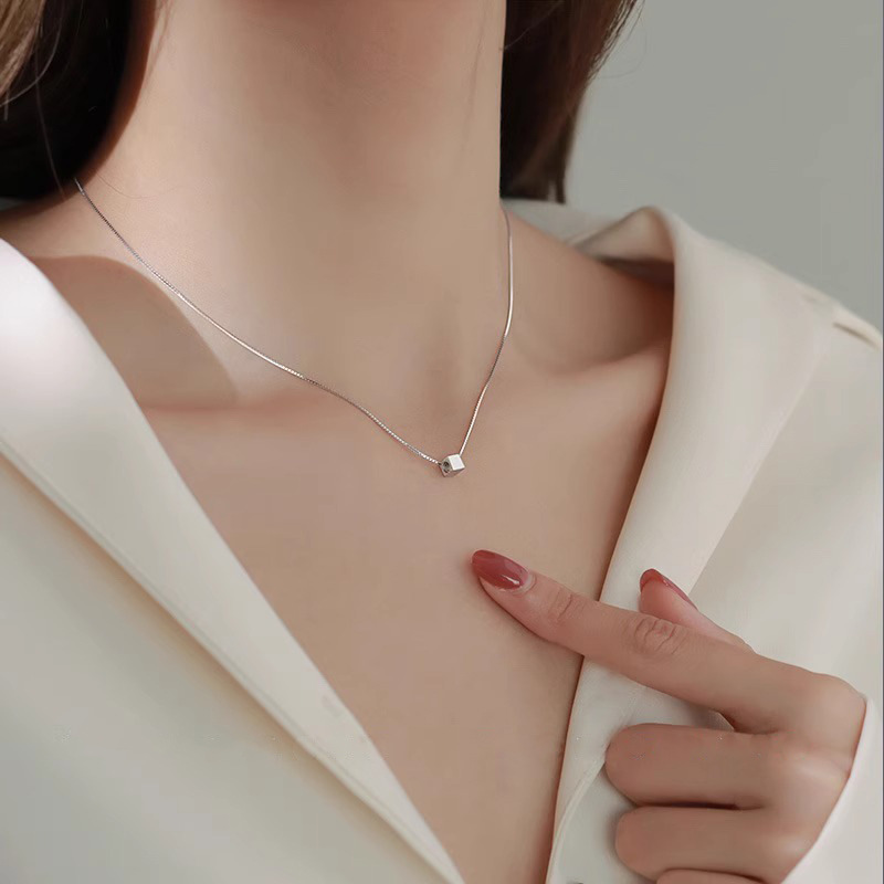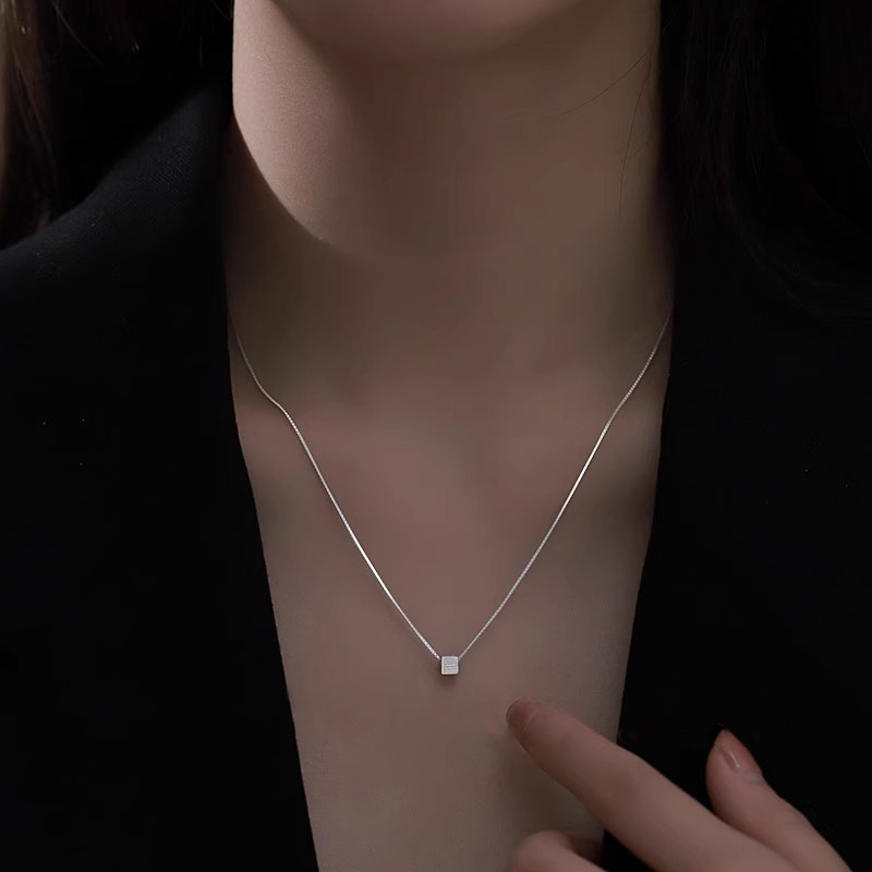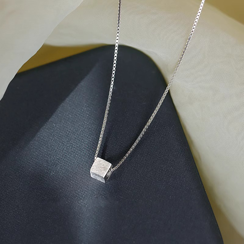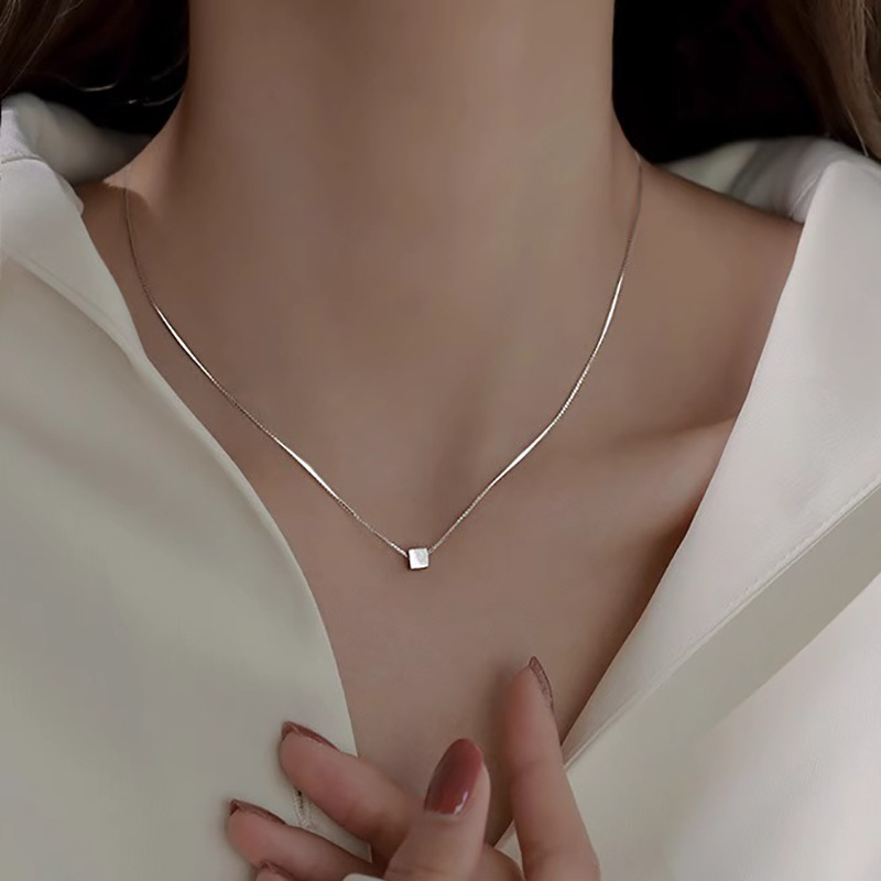 小衆シンプルな小方糖ネックレス女性日常百合デザイン感幾何学ブロック鎖骨鎖紅書同金潮