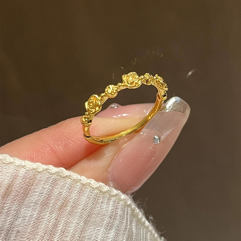 金色のバラの指輪の女性の軽豪華な小衆の百合食の指戒の口は甘い彼女の贈り物の潮を調節することができます。
