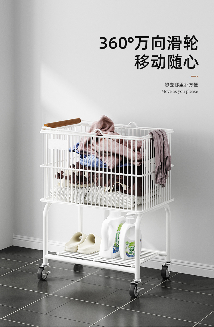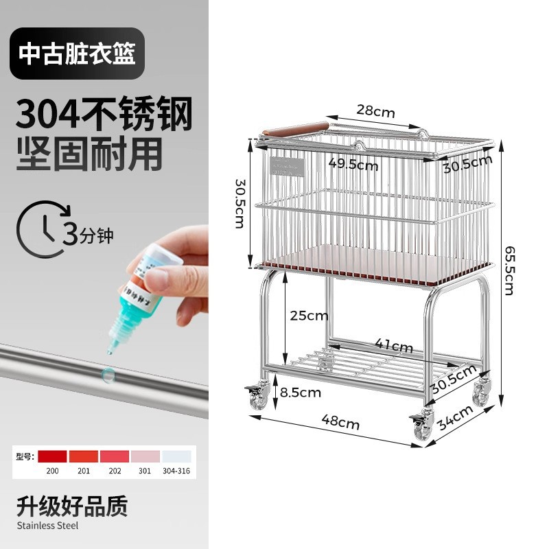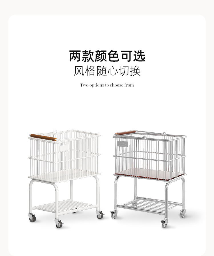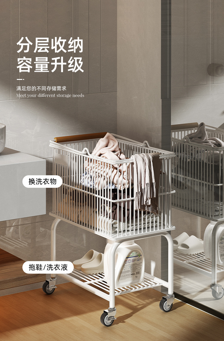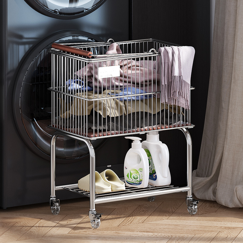北欧风可移动不锈钢双层脏衣篮置物架大容量家用收纳篮小推车跨境