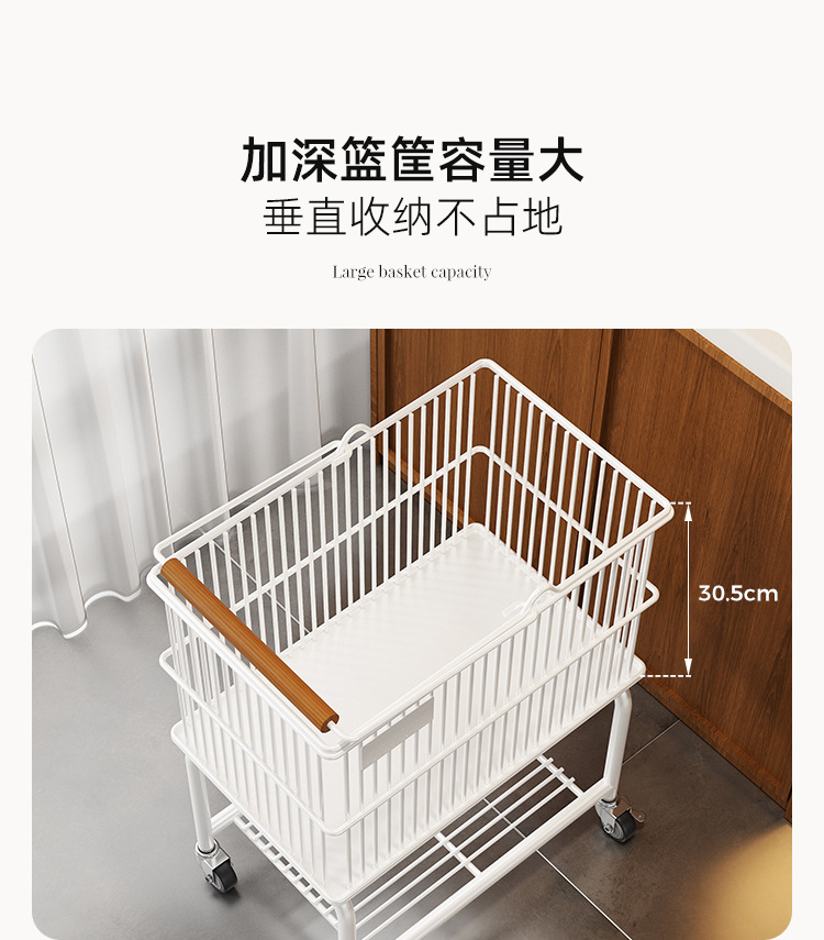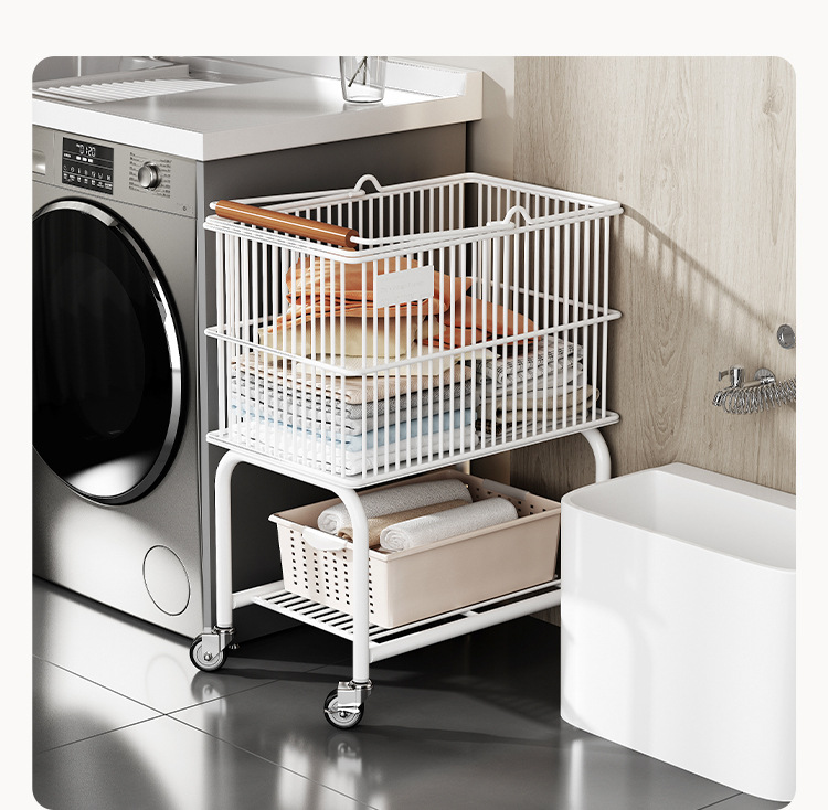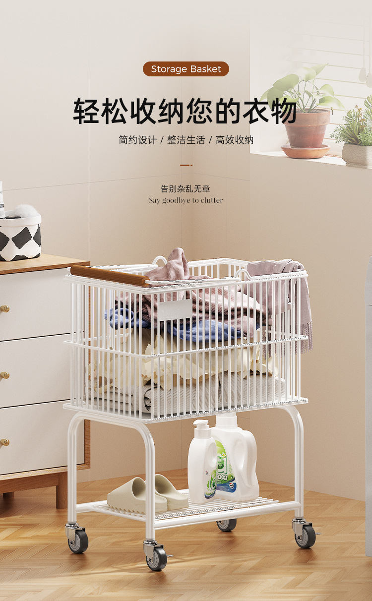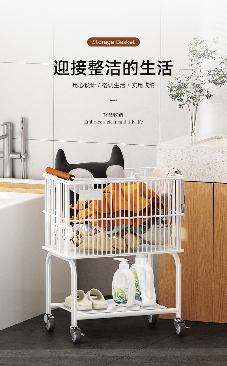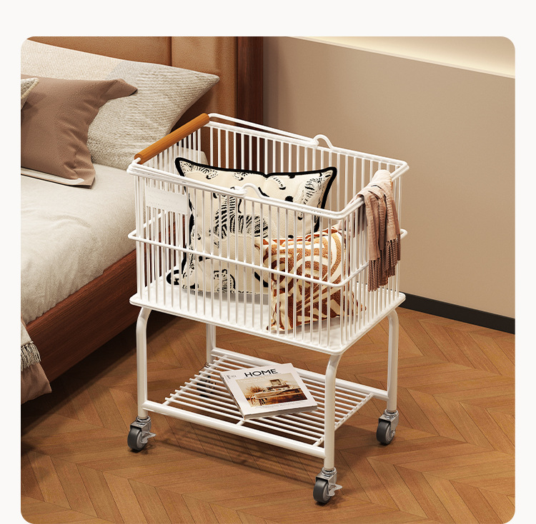 北欧风可移动不锈钢双层脏衣篮置物架大容量家用收纳篮小推车跨境
