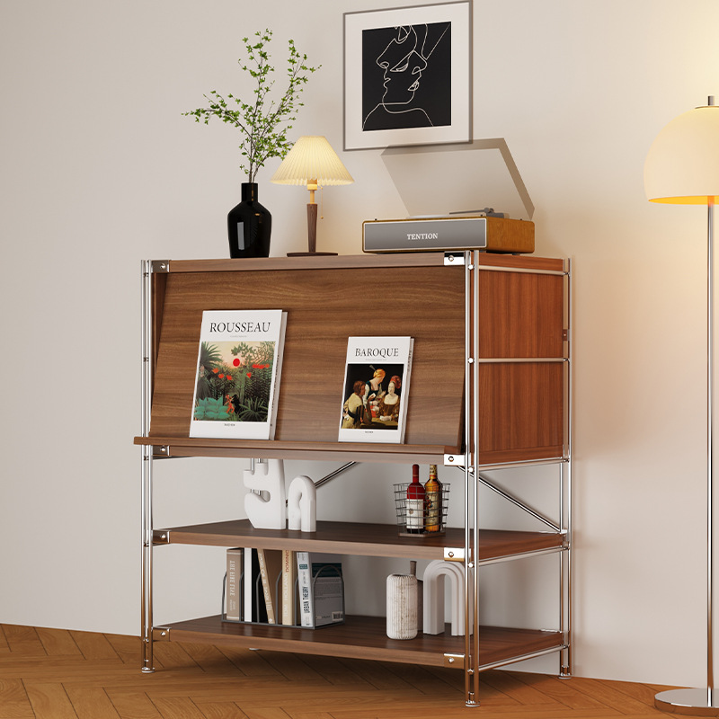 中古风置物架家用收纳展示架餐边柜多功能客厅落地杂志柜置物柜子
