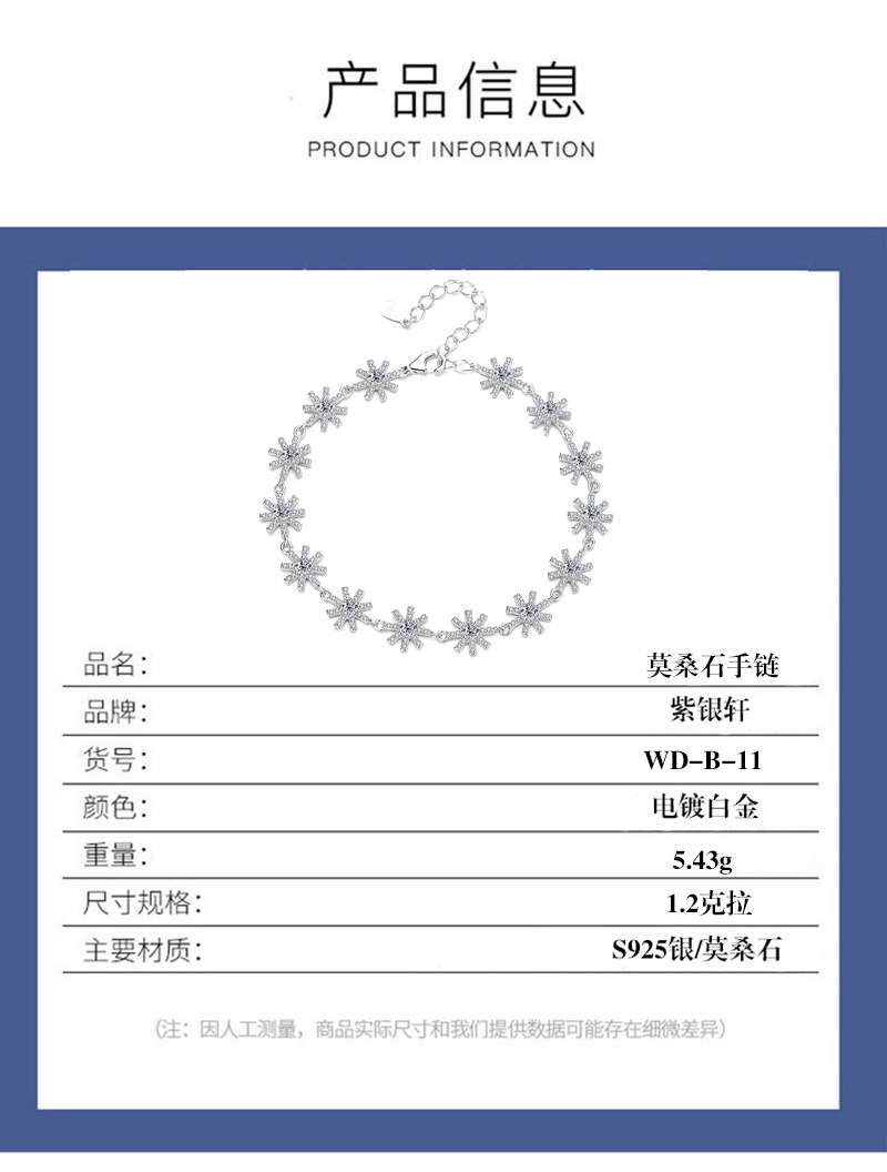 S925純銀莫桑ドリル恋心ブレスレット女性韓国版シンプル莫桑石手飾り森系クリスマスプレゼント卸売り