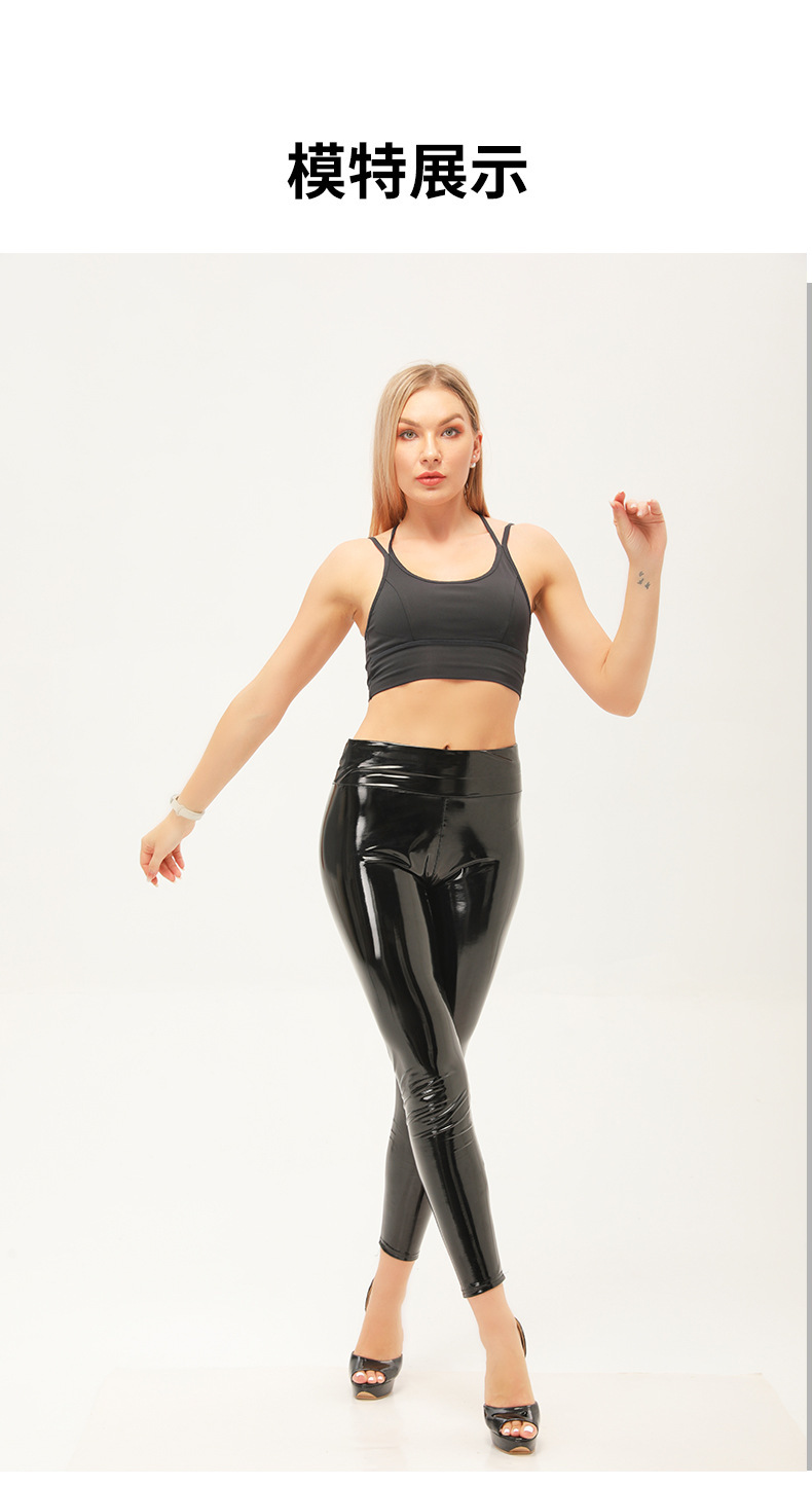 高腰镜面皮裤女秋冬新款亚马逊欧美跨境热销弹力紧身打底裤长裤