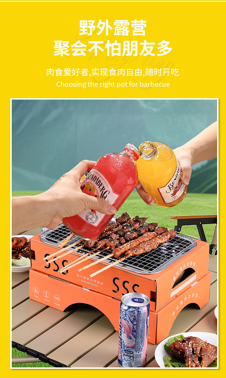 使い捨て携帯型炭素オーブン野外オーブンの木炭韓国式グリル屋外キャンプ無煙オーブン
