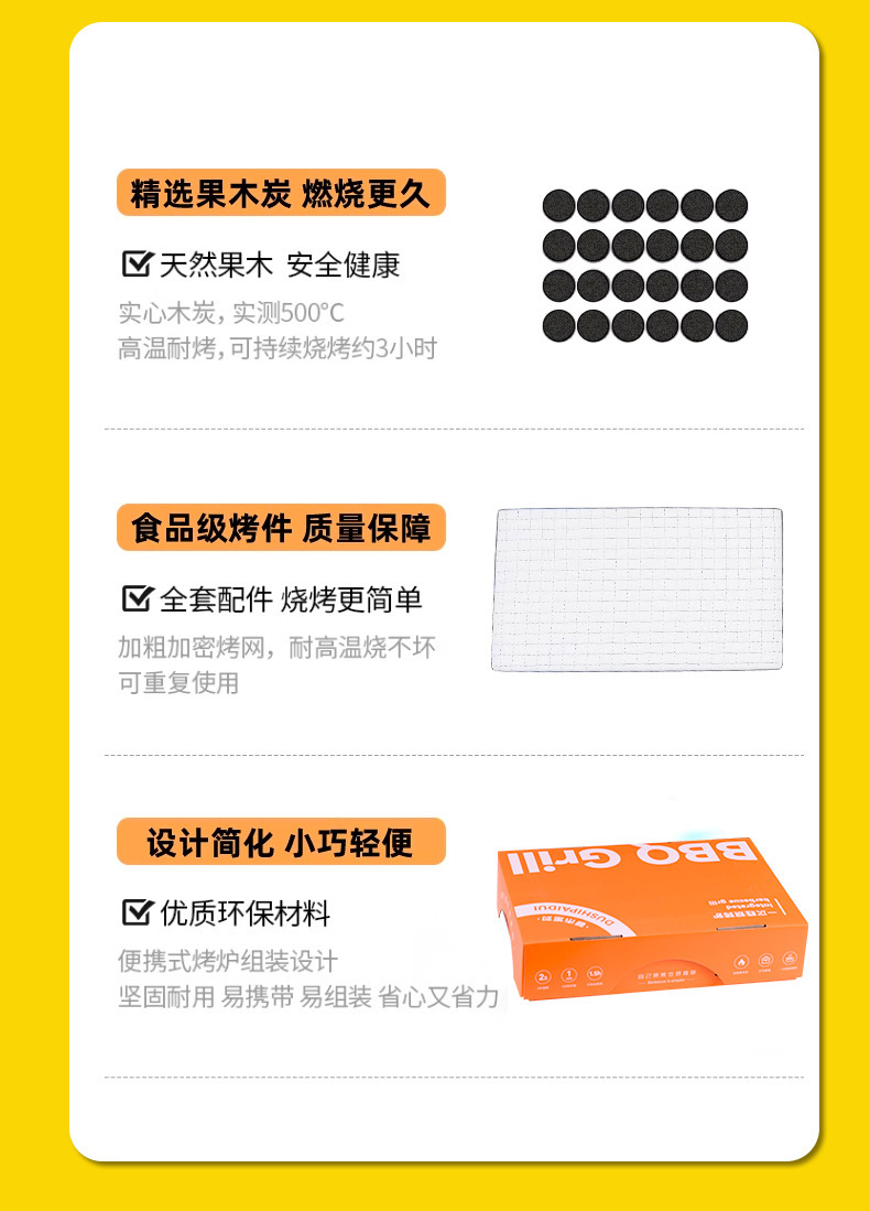 使い捨てオーブングリルピクニックコンロ屋外携帯家庭用小型木炭無煙焼肉ラックセット