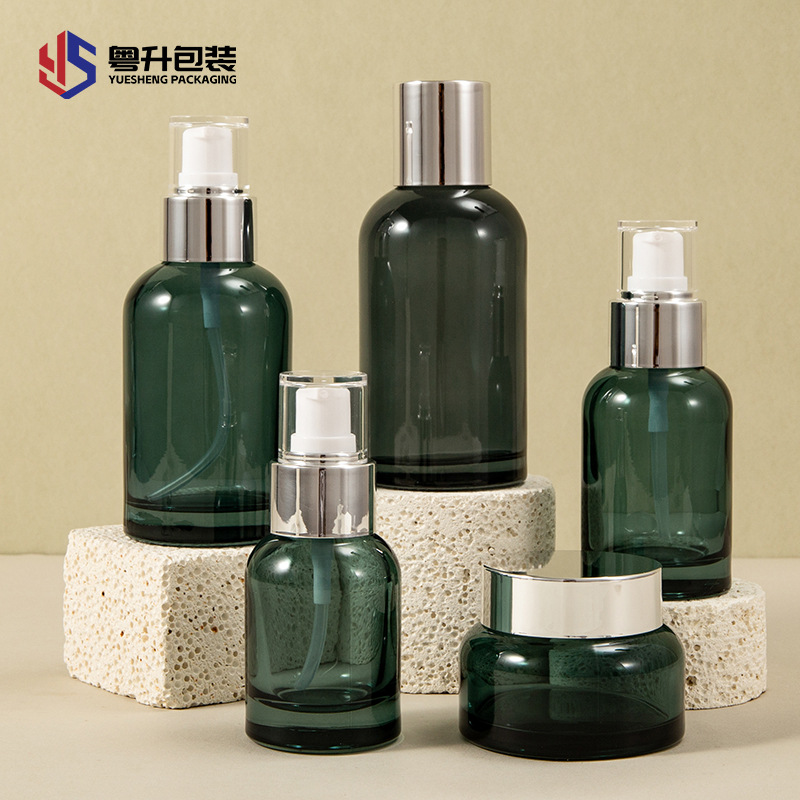 新款厚底圆肩套装瓶30g膏霜瓶40ml精华液瓶100ml压泵乳液玻璃瓶