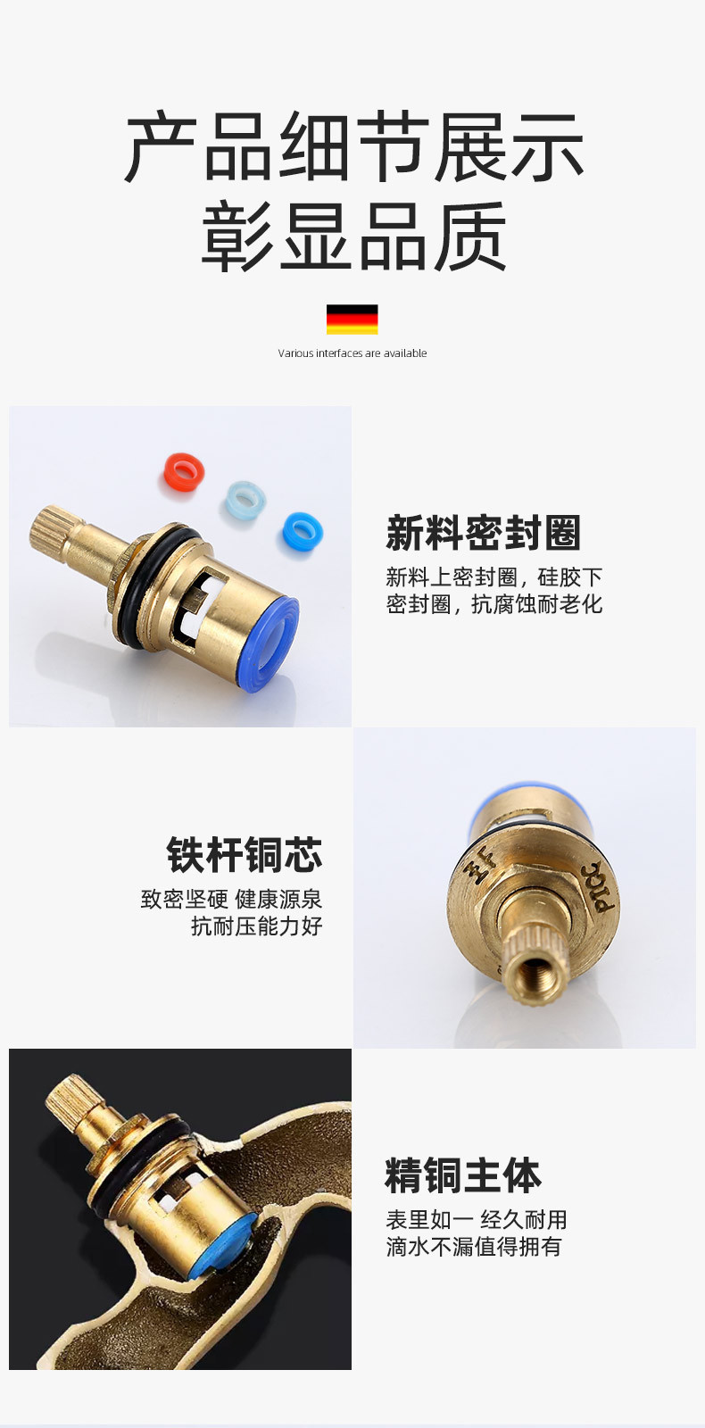 通用型水龙头阀芯全铜4分快开水龙头芯子三角阀单冷热水陶瓷配件