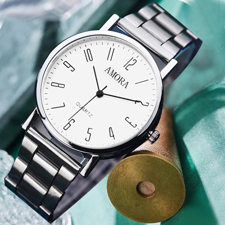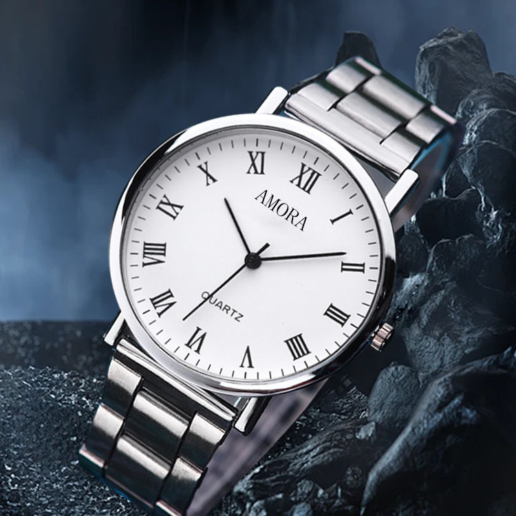 AMORA现货厂家直营男表礼品手表批发 watch简约钢带石英腕表代发