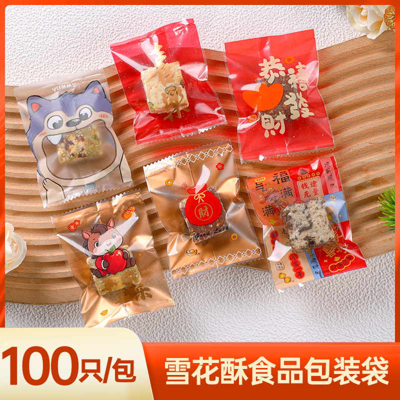 透明な雪花餅機械密封袋、ヌガークッキー、クランベリービスケット袋、越境で人気の食品グレード