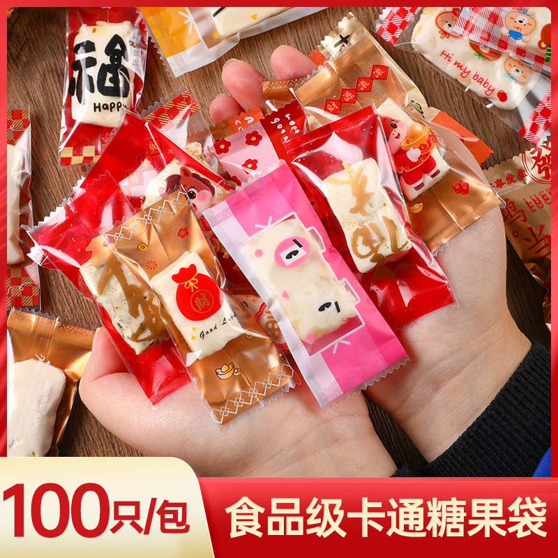 漫画風新年ベーキングギフト包装袋、クッキー用ジップロックバッグ、太妃飴、雪花餅、キャンディー用小型自立袋、可愛い