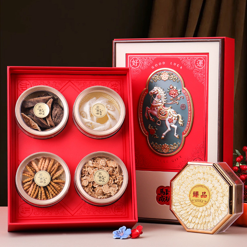 2026年新款好运加马通用双拼四宝滋补礼盒石斛海参鹿茸燕窝礼品盒