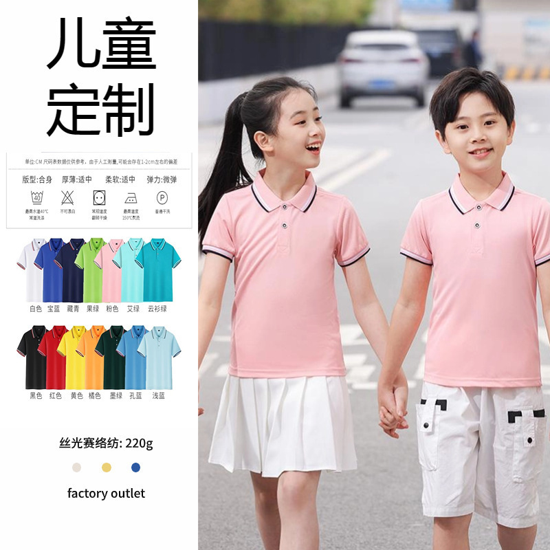 夏用子供用ポロシャツ半袖Tシャツ、小中学生卒業式制服、学校制服、文化服、ロゴのカスタムオーダー