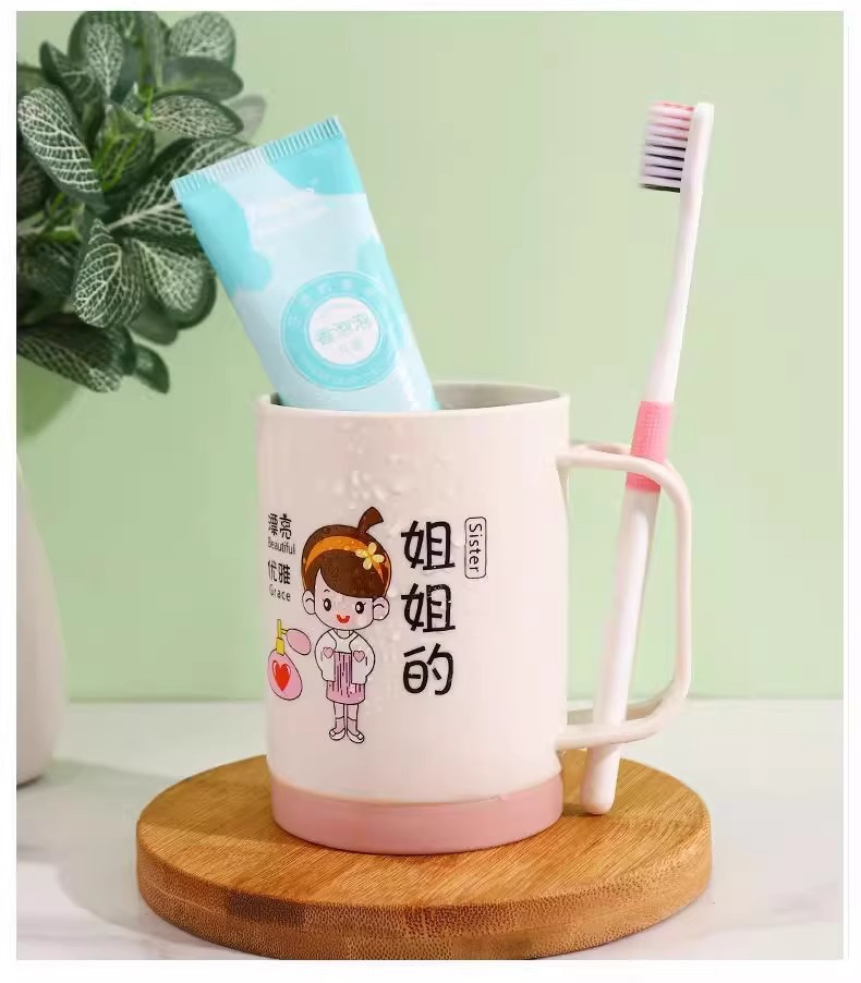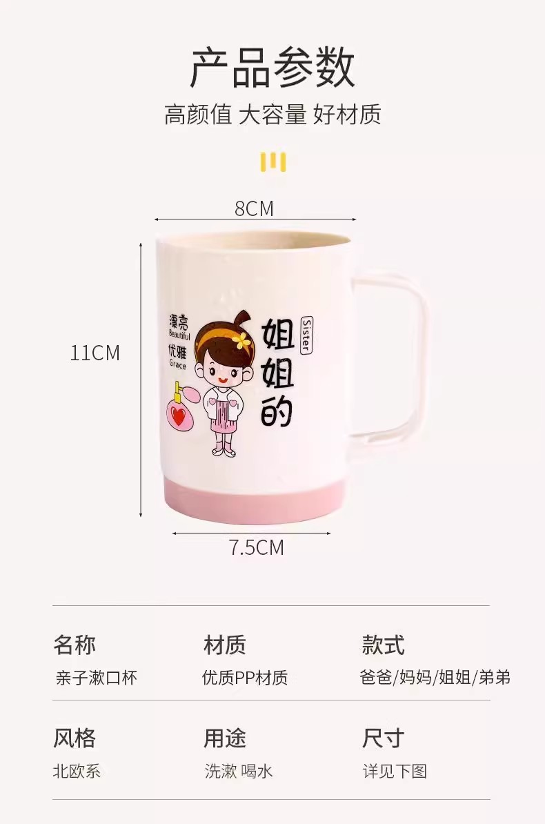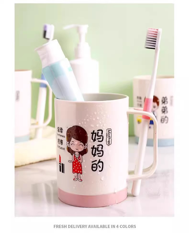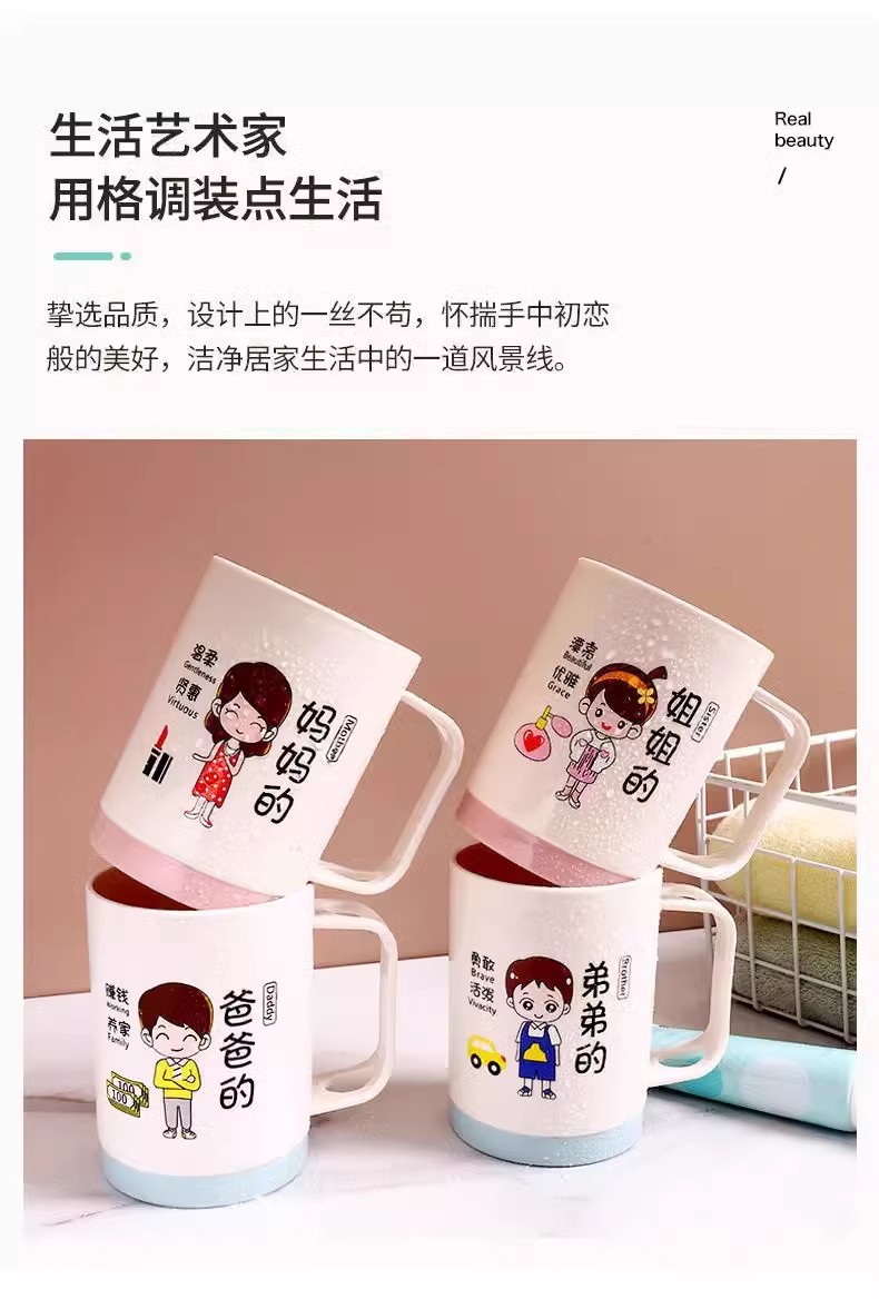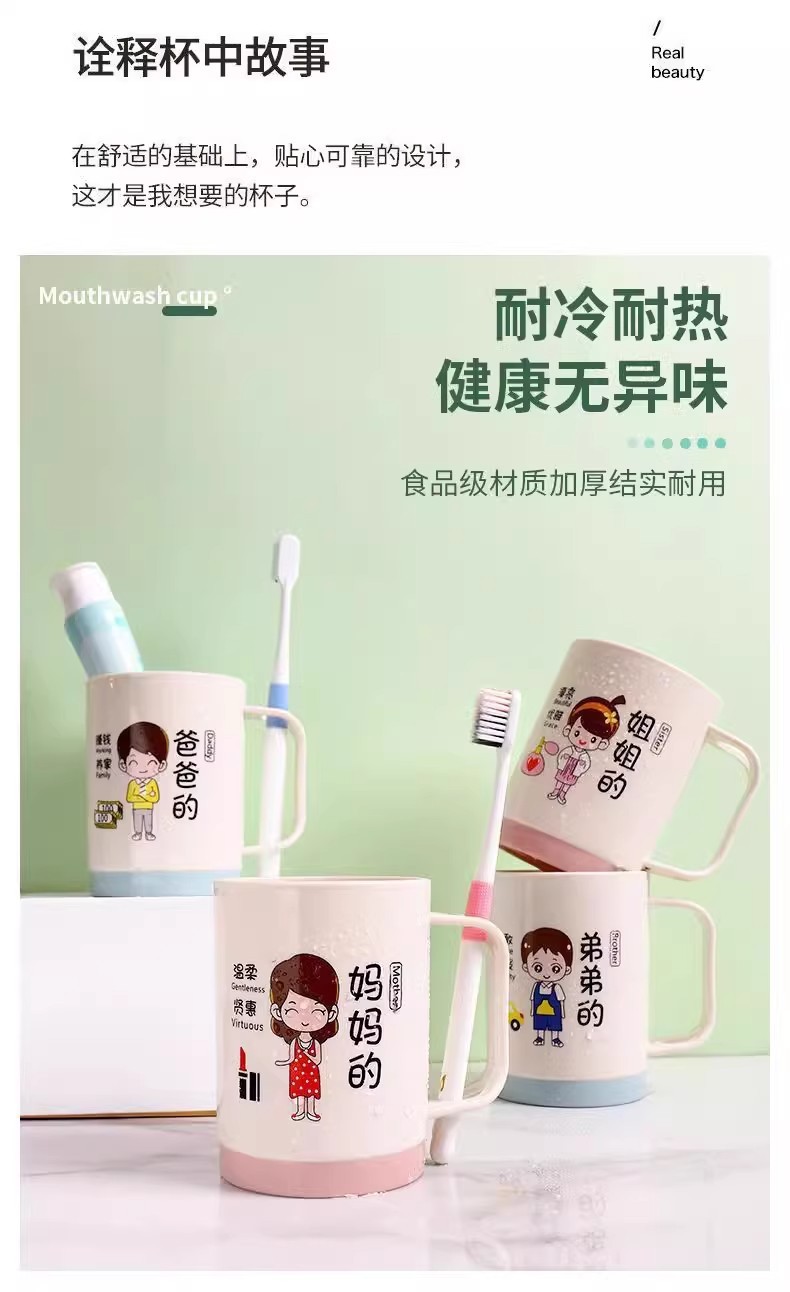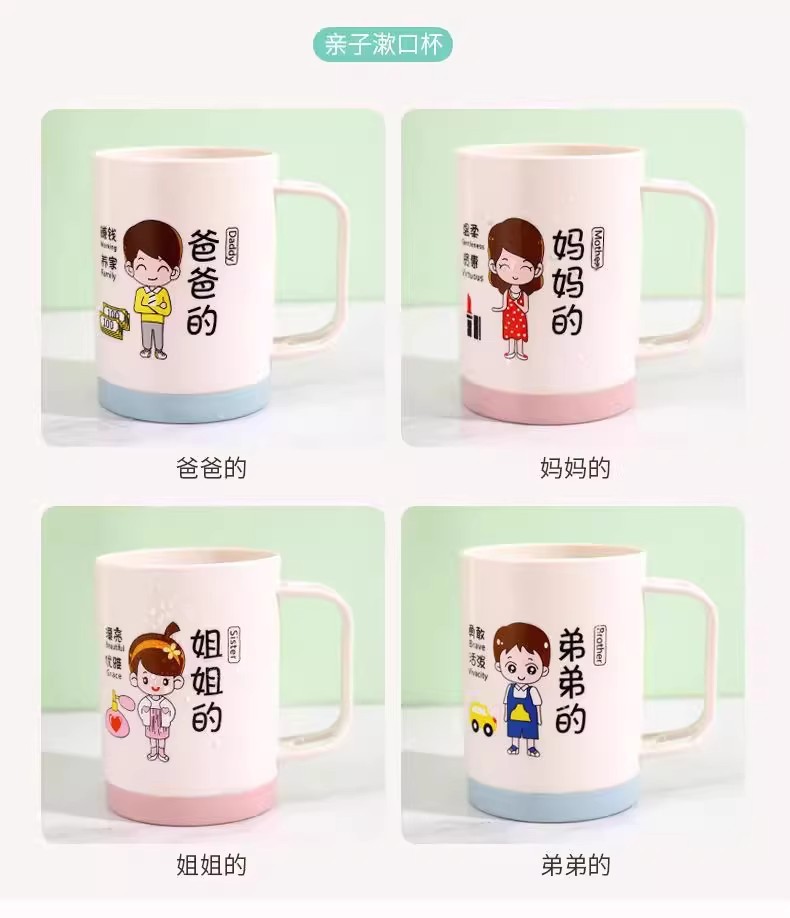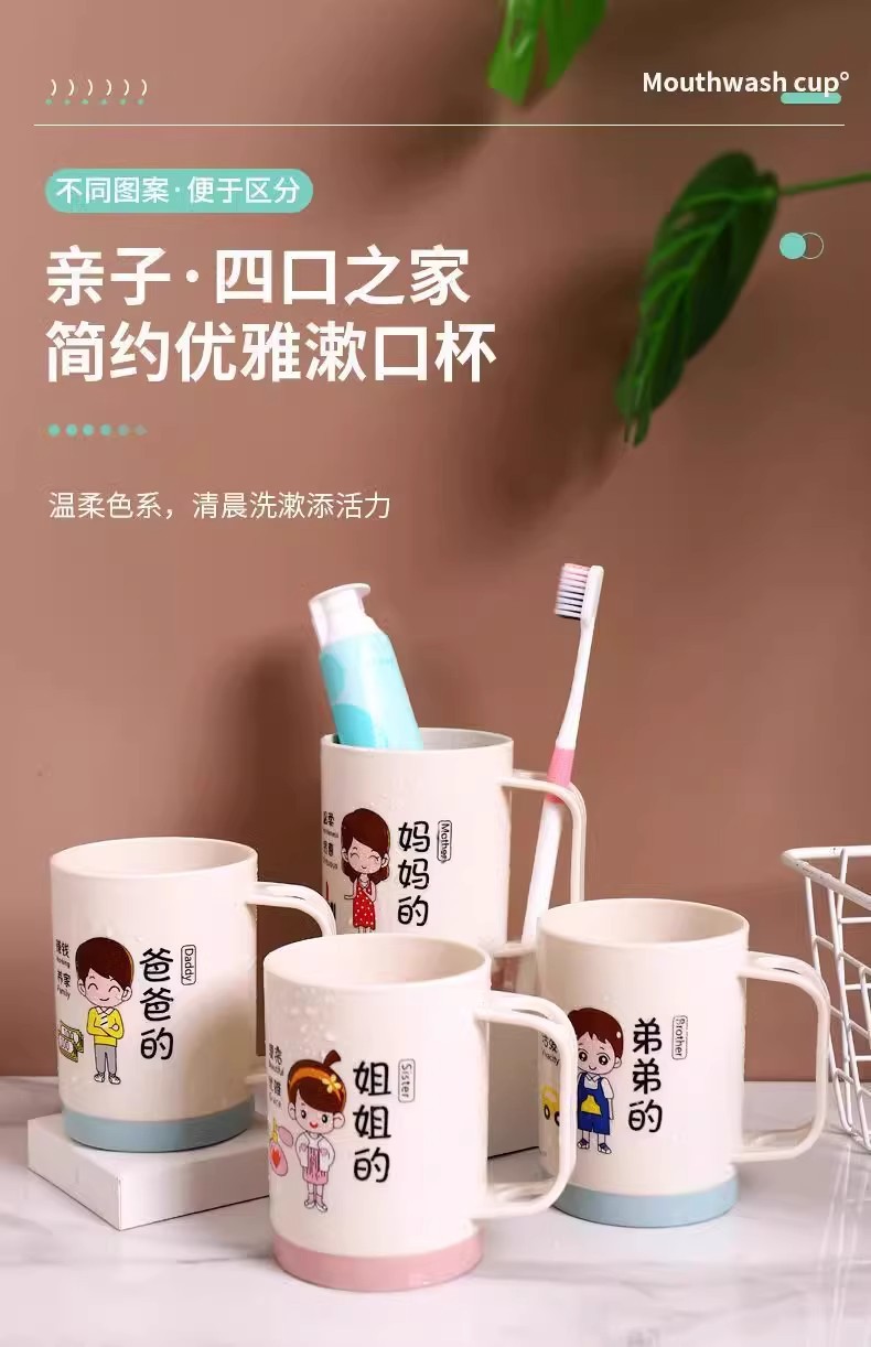 漫画親子歯磨きカップ家族ポートレートセットウォッシュカップ肥厚プラスチック家族マウスウォッシュカッププラスチックボウル