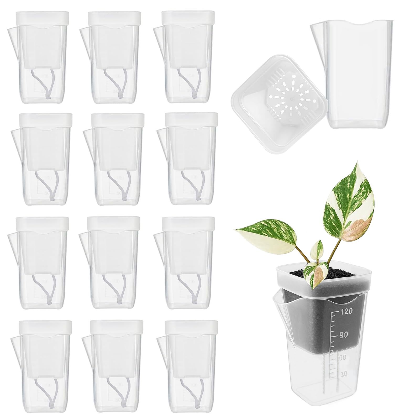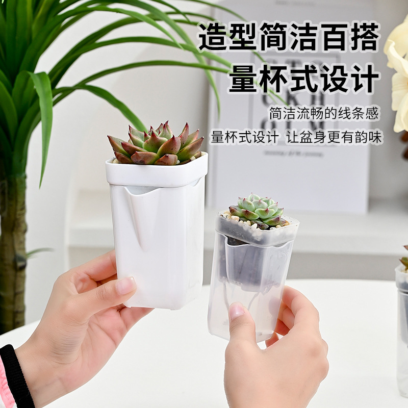 加厚半透明水培矮方多肉塑料花盆植物盆栽白色刻度量杯线吸盆小方