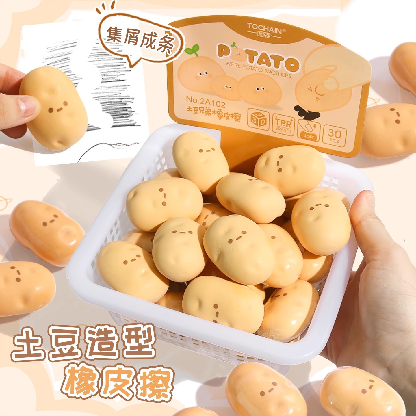 土豆2A102橡皮擦创意仿真食物马铃薯造型铅笔擦学生用卡通可爱搞
