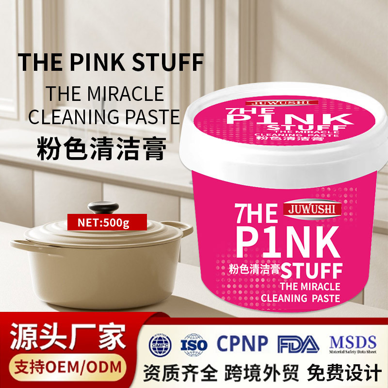 跨境专供粉色不锈钢清洁膏温和多功能清洁膏清除厨房重油污去污膏