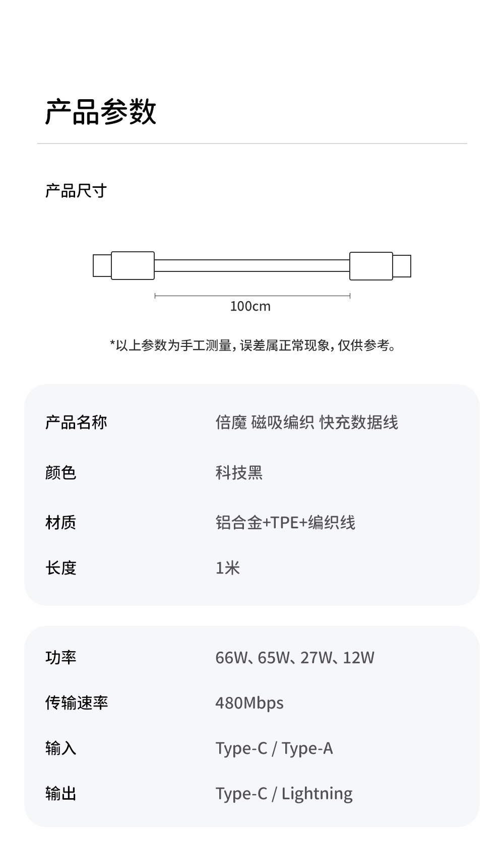 倍魔磁吸收纳编织尼龙数据线小巧便携手机平板快充线适用苹果华为