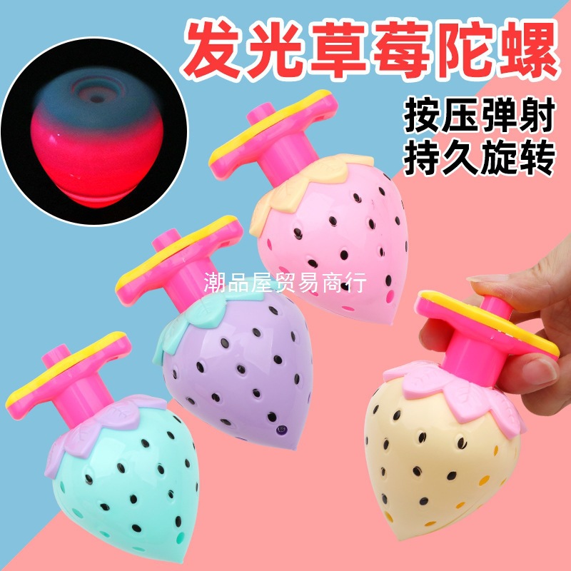子供の贈り物の漫画の力が光るイチゴのジャイロはおもちゃの露店のおもちゃの夜市の幼稚園の小さいプレゼントを発射します。