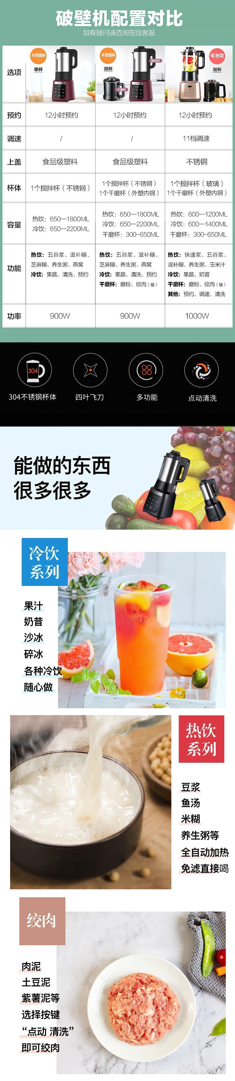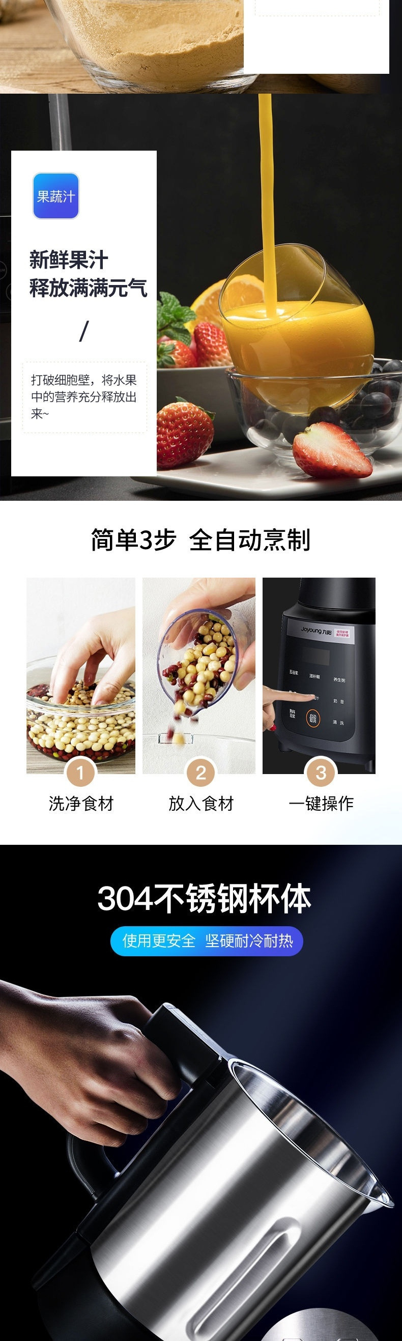 九陽新型破壁機予約家庭用大容量加熱全自動多機能料理補助食ステンレスカップ