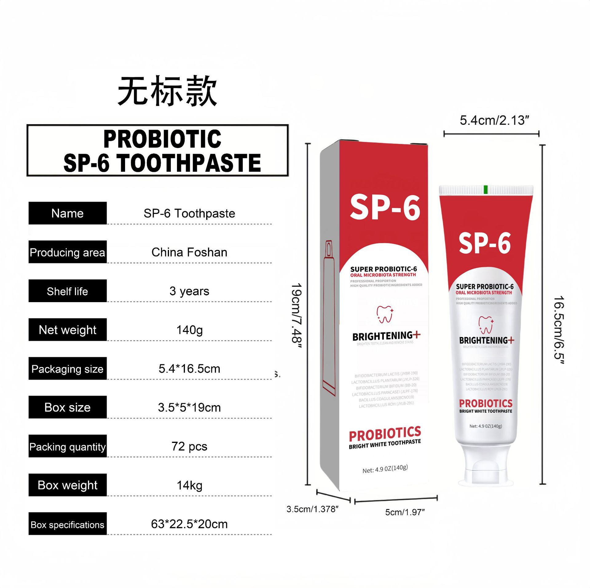 クロスボーダー無ラベル SP-6 歯磨き粉プロバイオティクス美白ディープクレンジングタバコの汚れを除去新鮮な息を保護歯茎 140 グラム