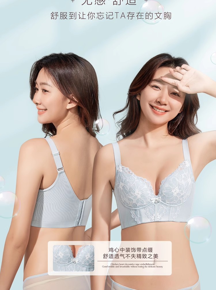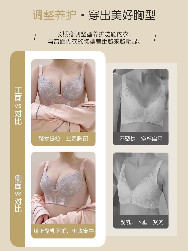 フレンチレース調整ブラジャー、レース大きいサイズ、薄い軟鋼リング、胸を引き締める下着、胸の形を補正し、たるみを防ぐ