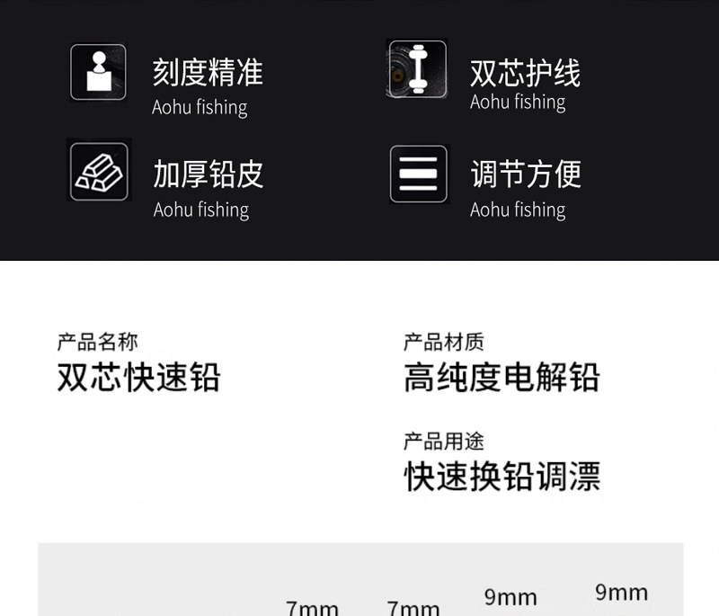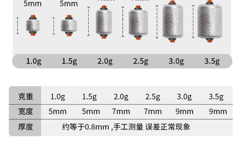 冰影矮墩墩纯手工竞技双芯刻度铅加厚环保钓鱼快速铅坠防炸铅皮