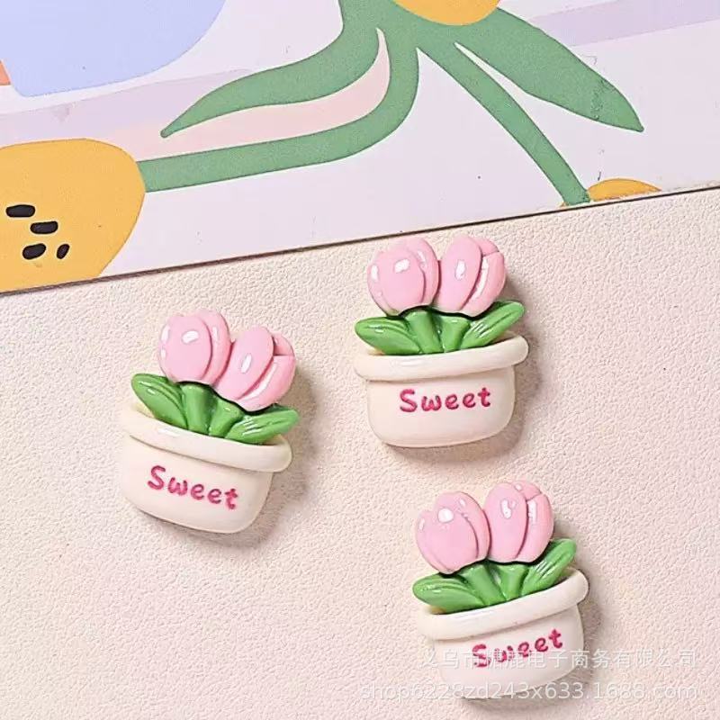 光沢のあるチューリップ植木鉢鉢植え車の装飾品樹脂アクセサリークリーム接着剤 diy 携帯電話ケースキーホルダー穴