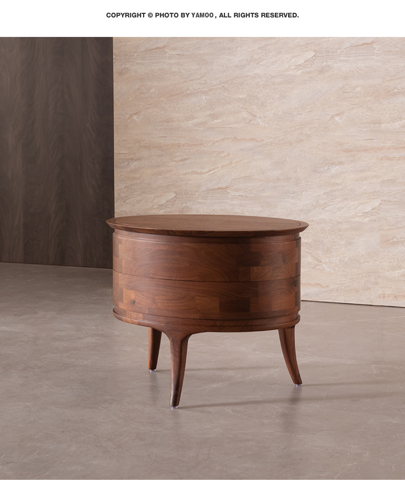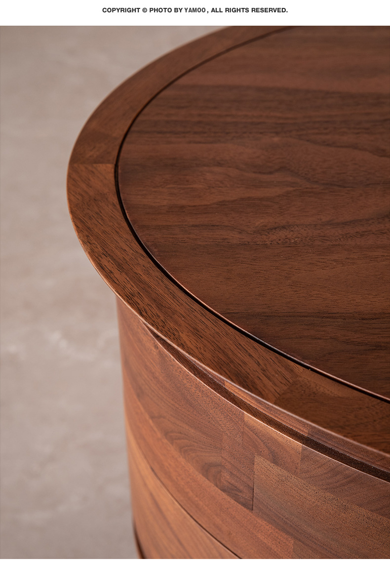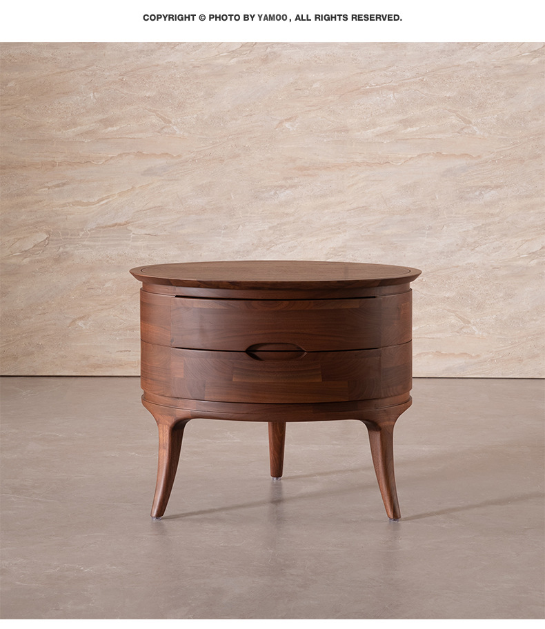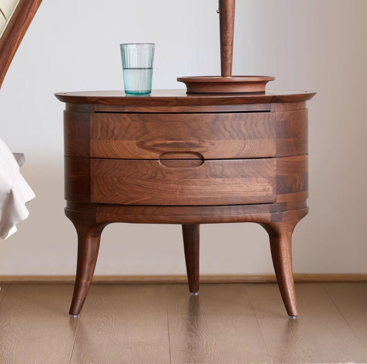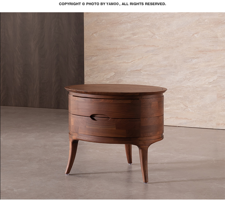 Yamoo北米黒胡桃木全実木ベッドの頭箱寝室ロッカー円形デザイナーベッドサイドの小さな戸棚