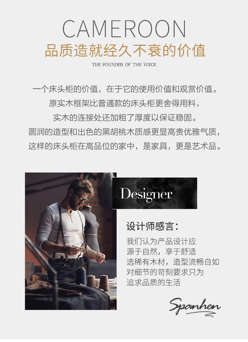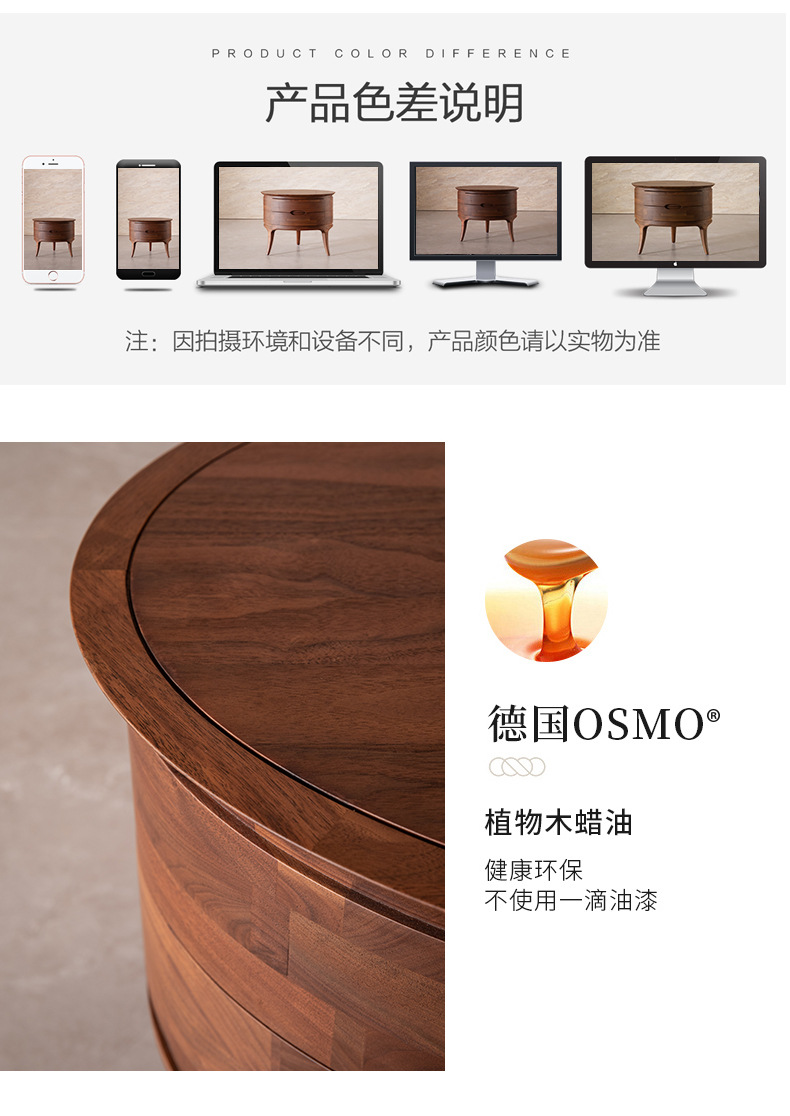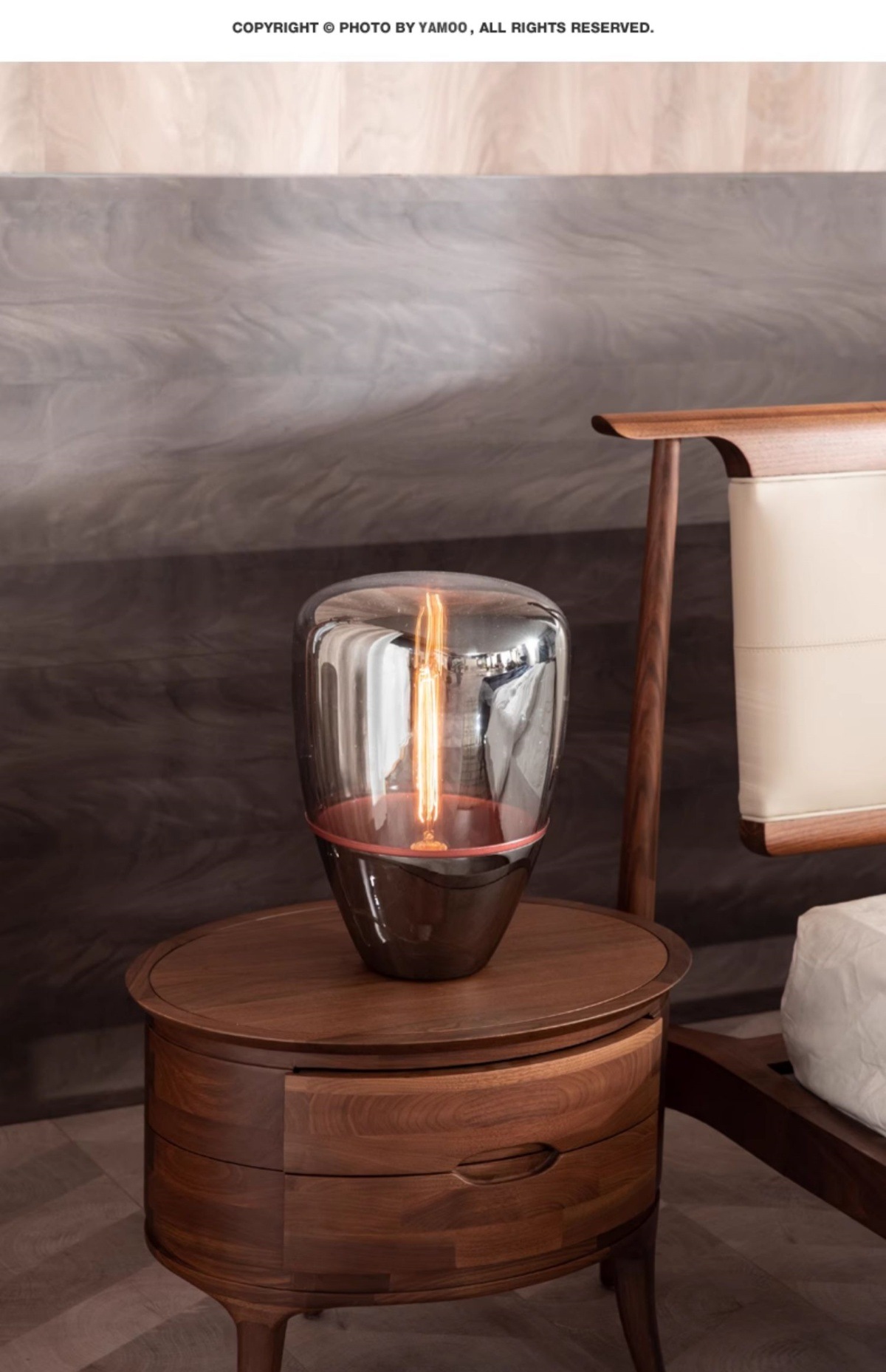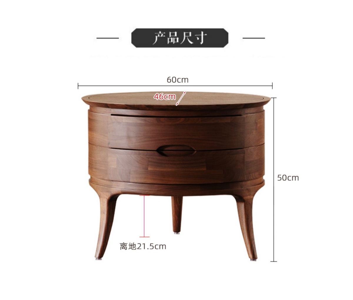 Yamoo北米黒胡桃木全実木ベッドの頭箱寝室ロッカー円形デザイナーベッドサイドの小さな戸棚