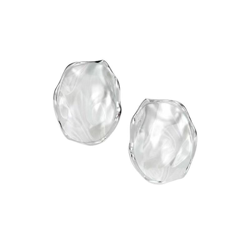 白蝶貝天然貝殻イヤリング氷ひび割れテクスチャハイエンドシンプルな楕円形気質イヤリング人気のイヤリング卸売