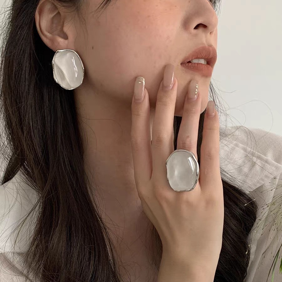 欧美蒂娜之泉耳钉首饰戒指套装轻奢夸张树脂耳饰中古复古开口