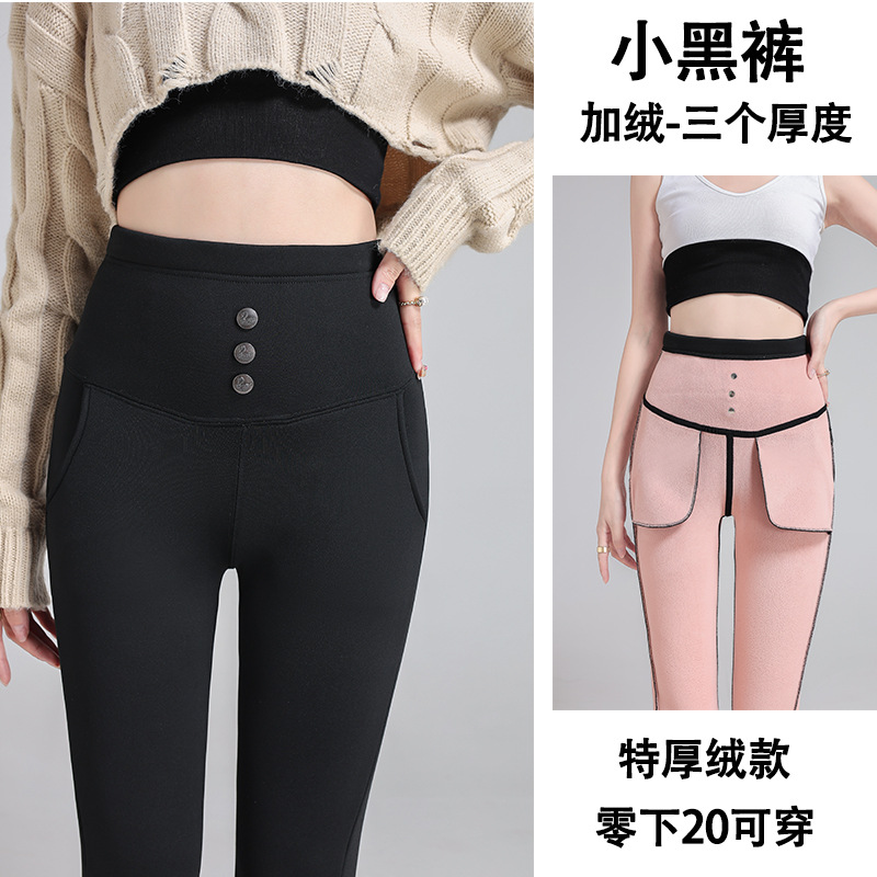 200斤の大きいサイズのベルベットのズボンの女性は秋冬に腰の高い黒いズボンの鉛筆を着て冬に足のズボンを厚くする